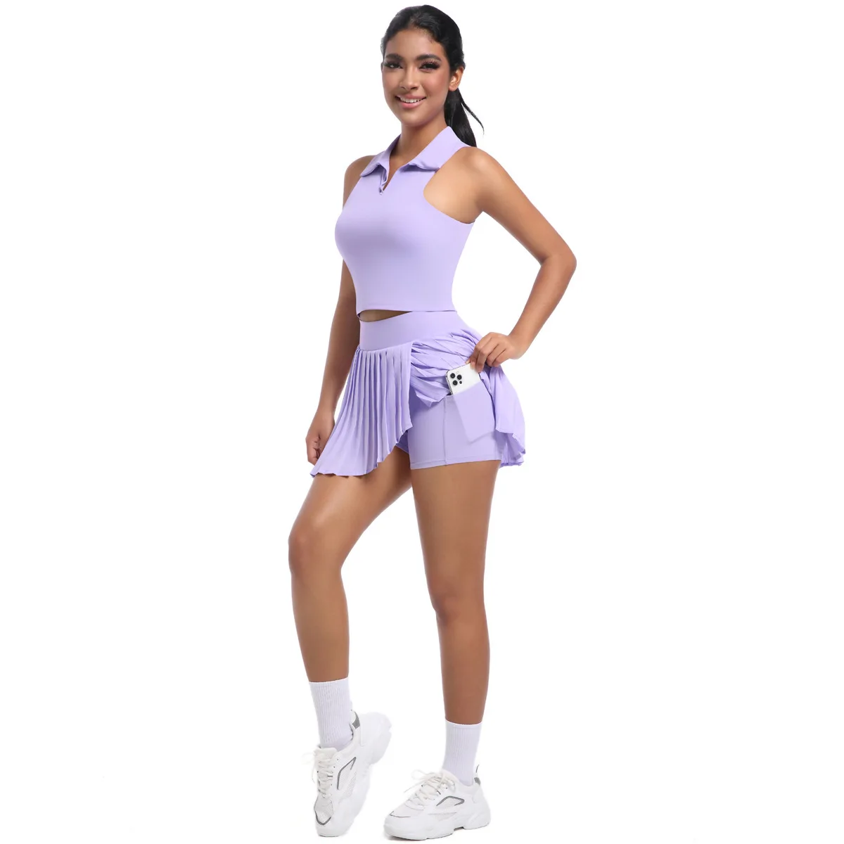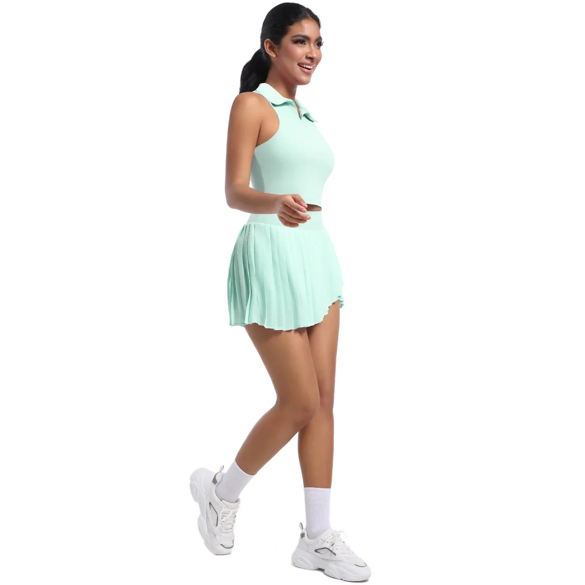 Lapel Vest Breathable Two Piece Pleated Skirt Suit Sports Running Fitness Yoga Clothes Women Tennis Skirt Sets
