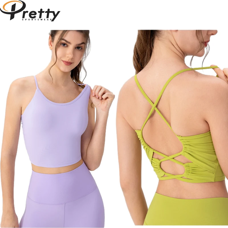 Sexy yoga tops for woman back cross hollow cropped slim Tops Gym fitness vest Running workout Tops dance vest with chest pads