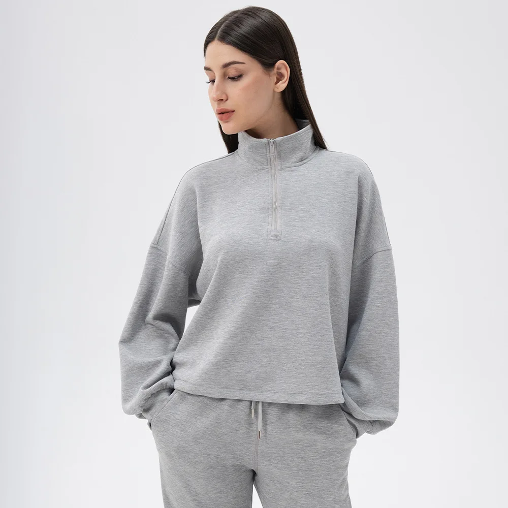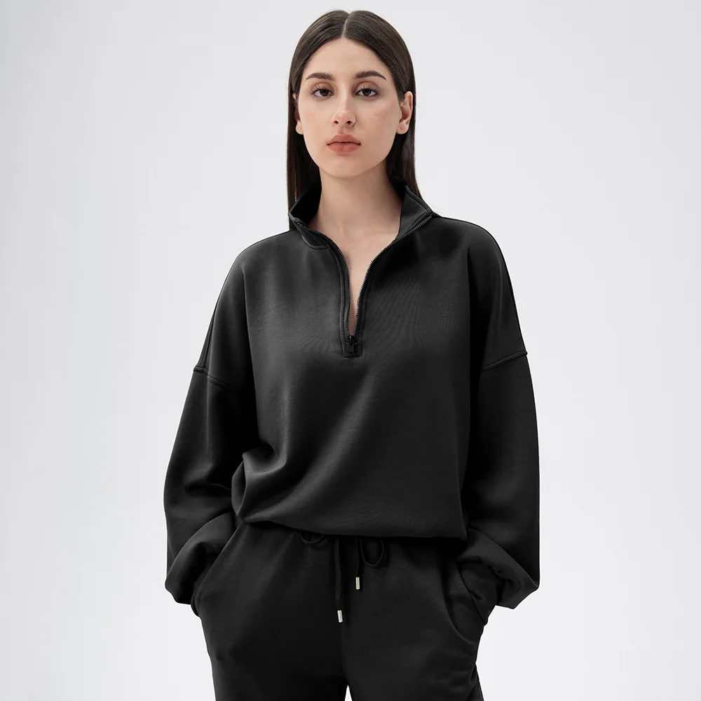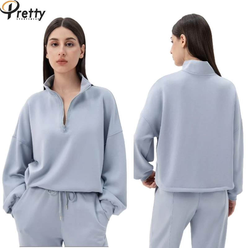 Autumn Winter woman soft modal loose yoga sweatshirts warm half zipper stand collar sports hoodies running fitness sports tops