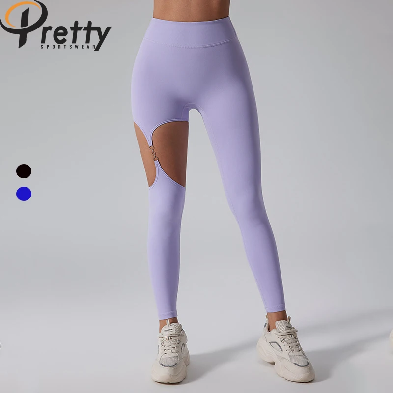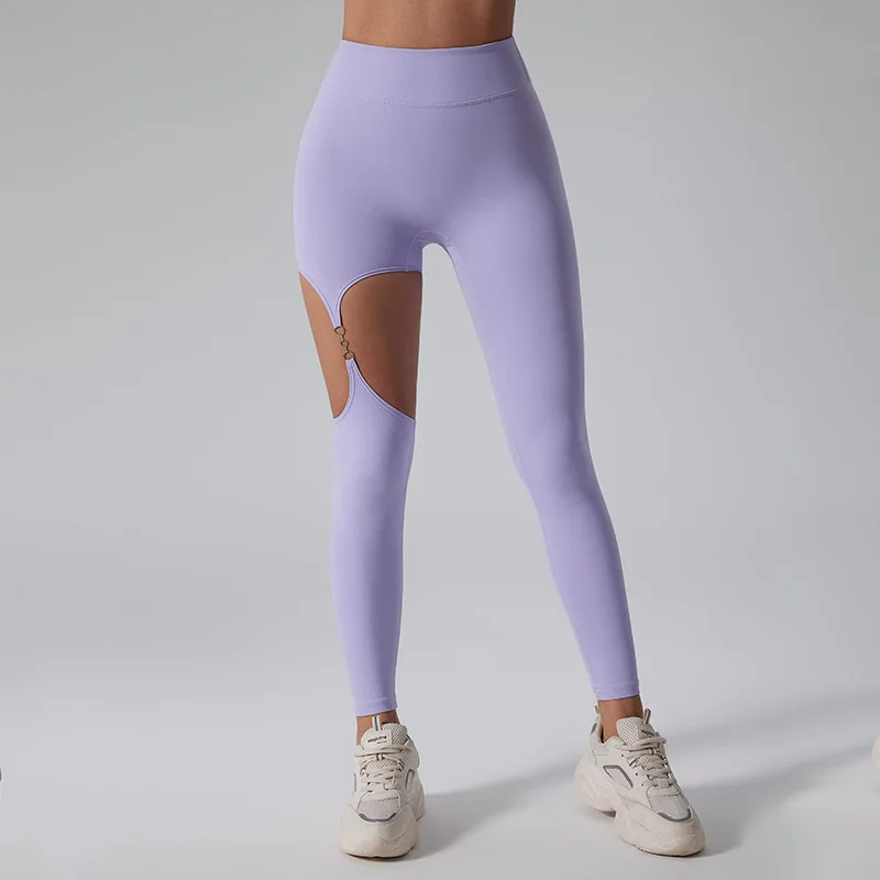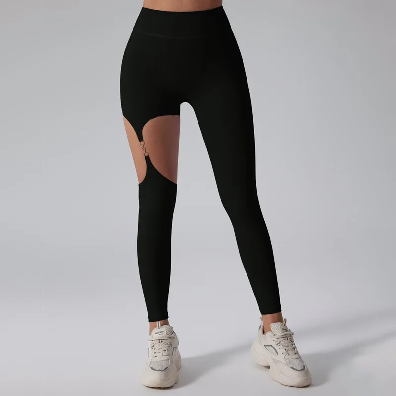 Woman sexy hollow out yoga leggings high waist hip lifting Pilates workout skinny pants Fitness Running leggings sports pants