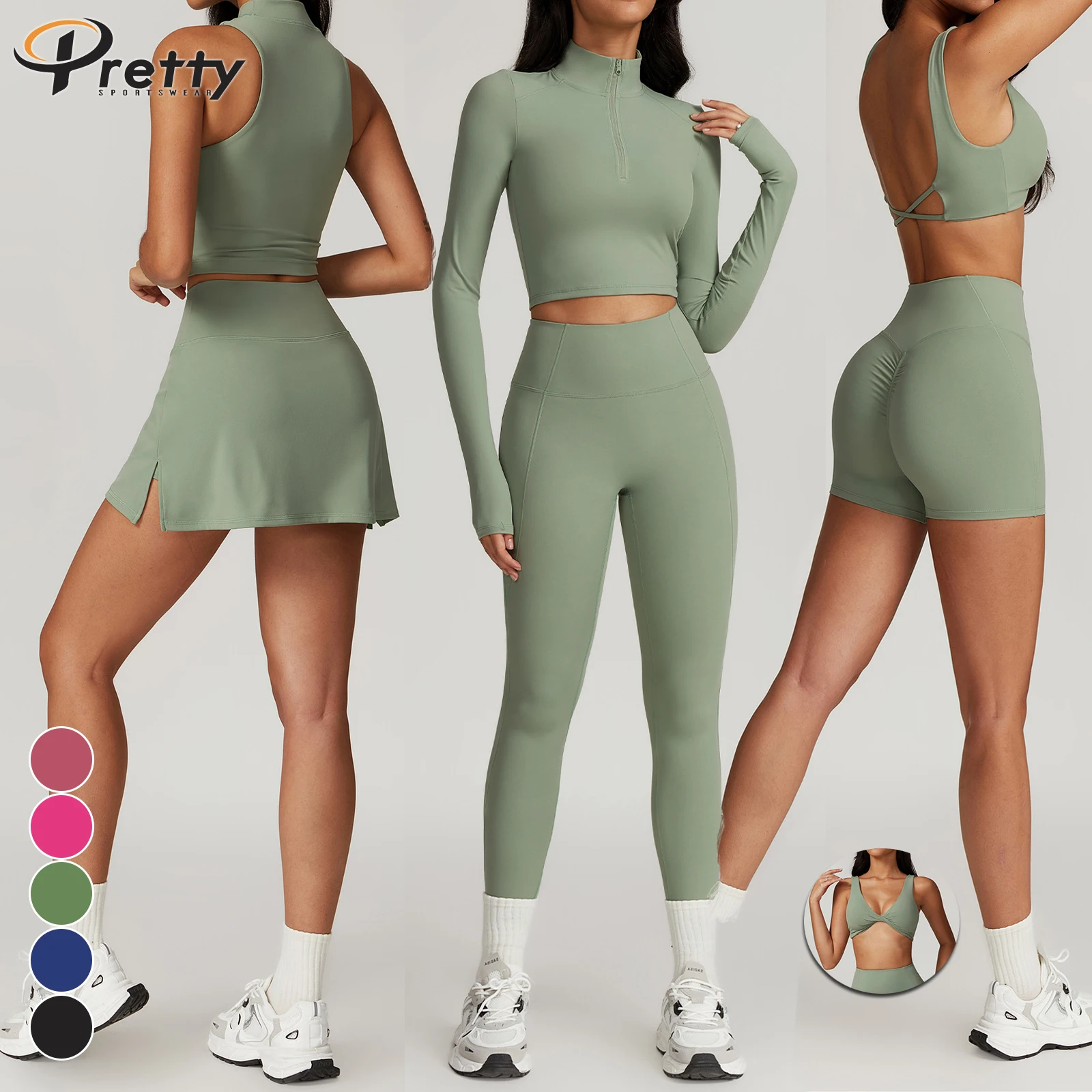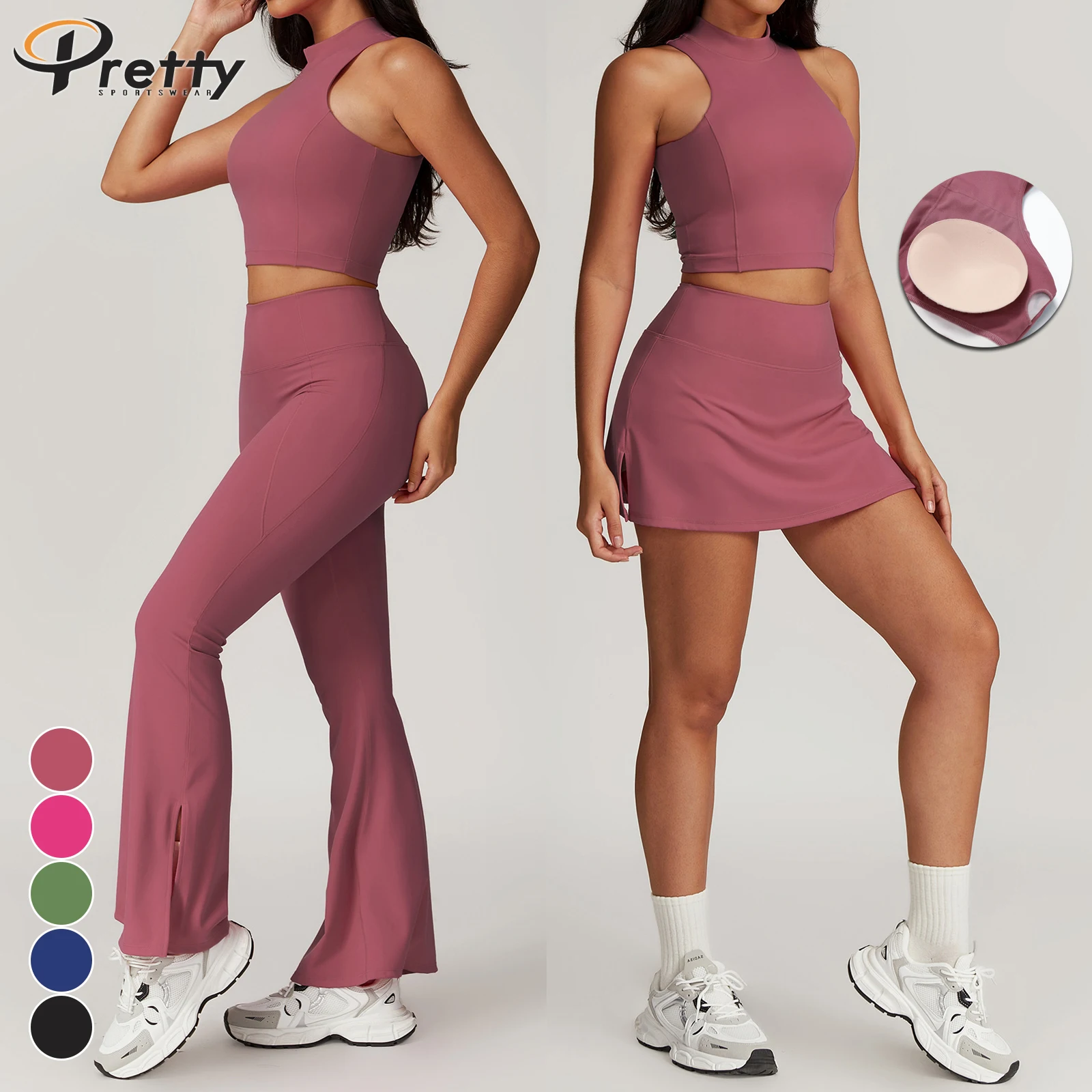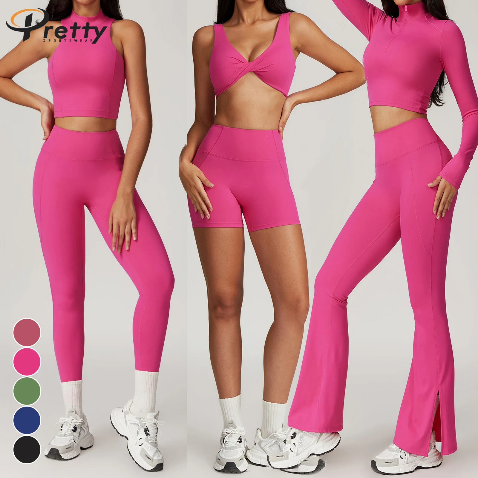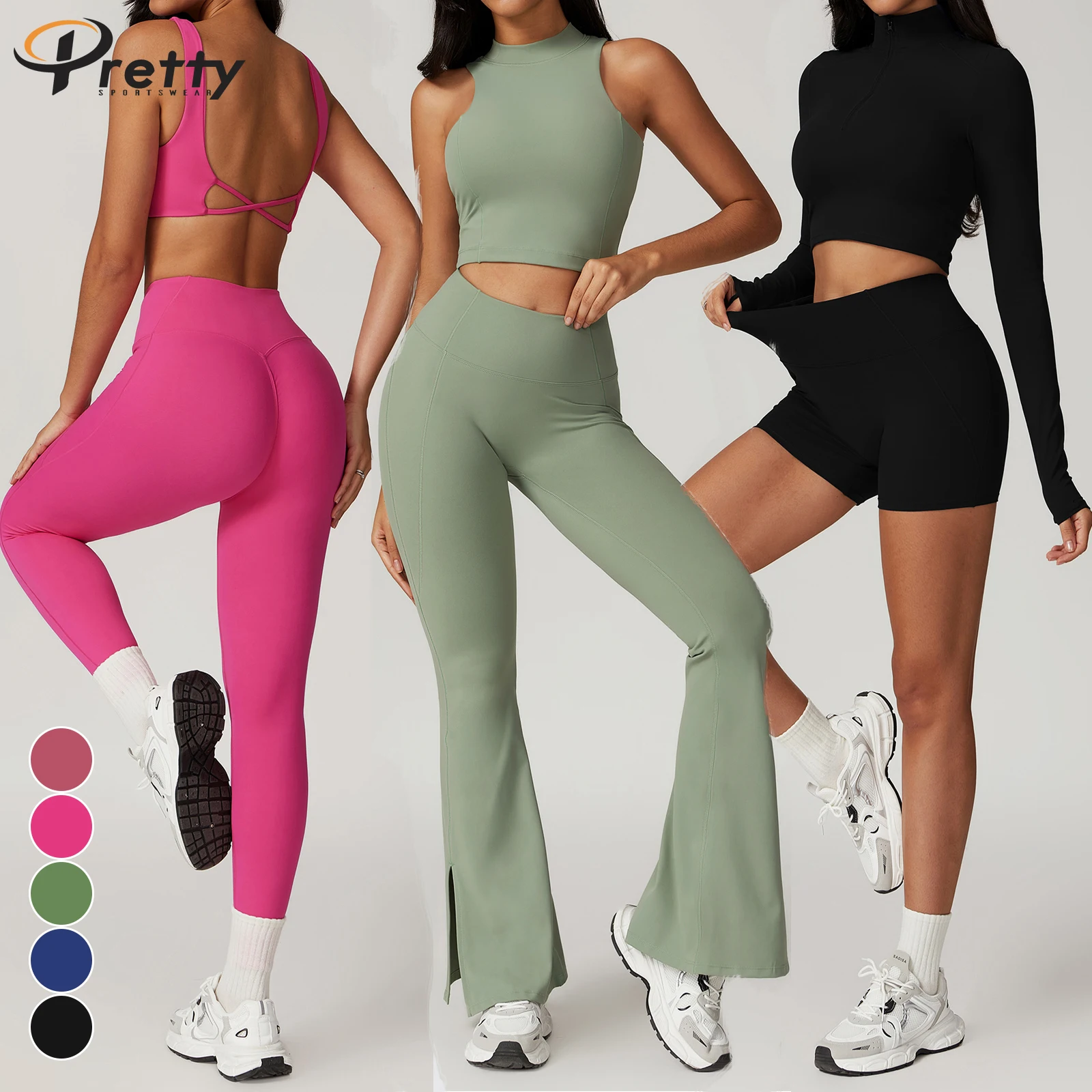 6pcs Women's Fitness Suit Shell Bra Workout Jacket Sports Flared Pants Halter Vest Basic Shirts Yoga Leggings Activewear