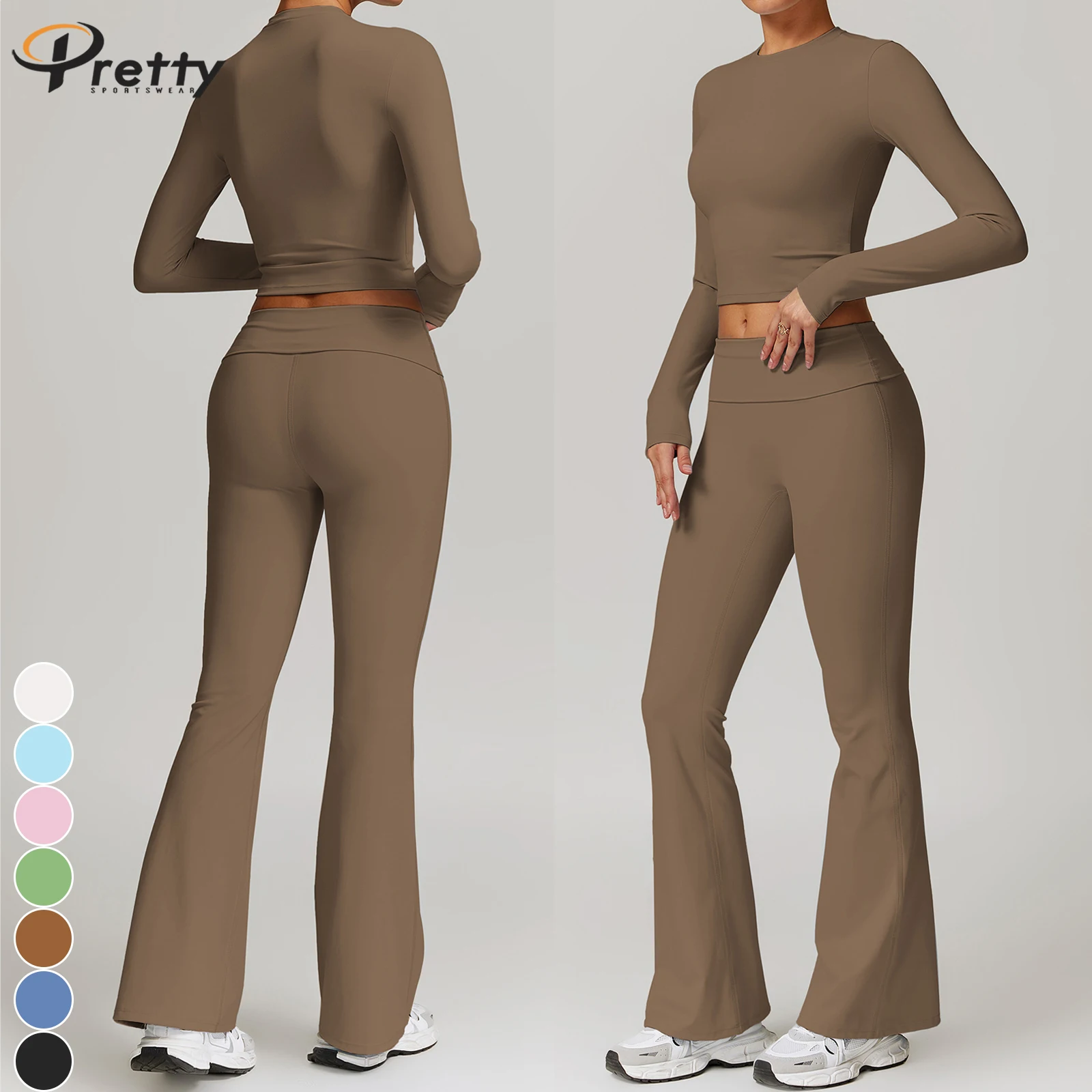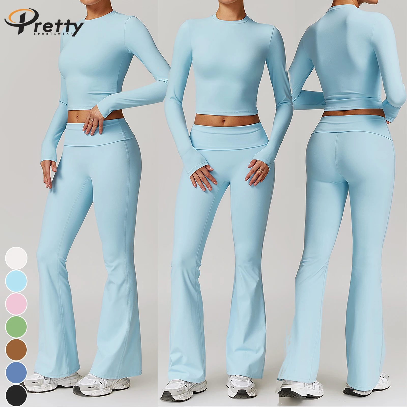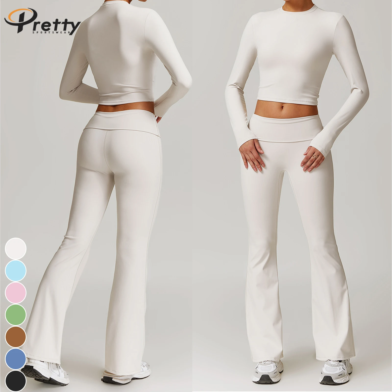 Women's Beauty Back Basic Tee Fitness Sets Yoga Suit Fold High Waist Pants Casual Sportswear For Women Workout Suit