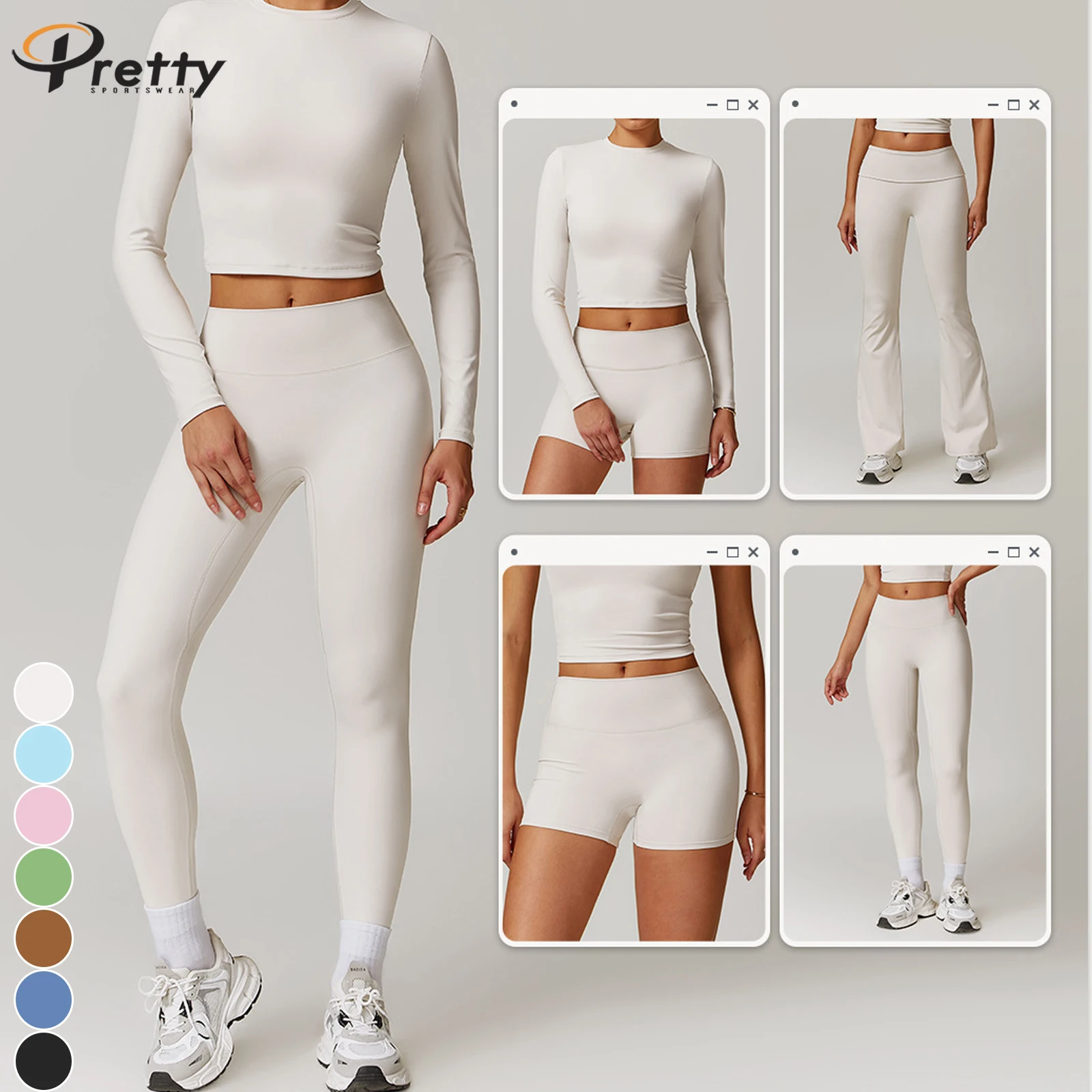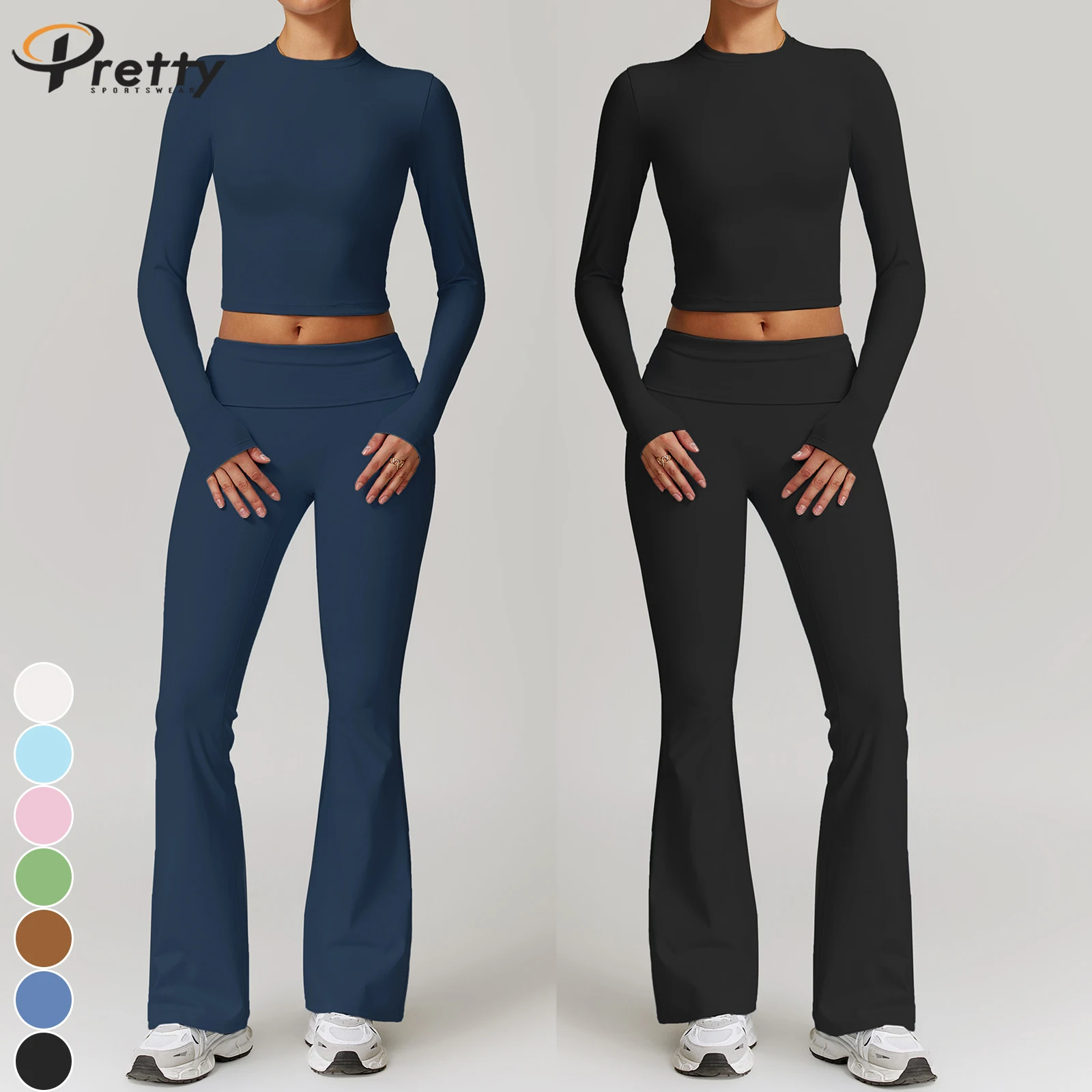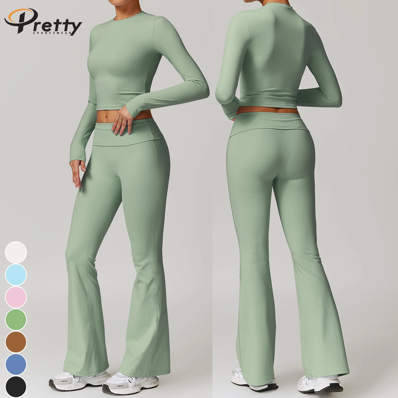 Women's Beauty Back Basic Tee Fitness Sets Yoga Suit Fold High Waist Pants Casual Sportswear For Women Workout Suit