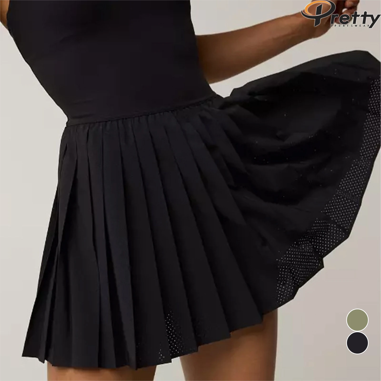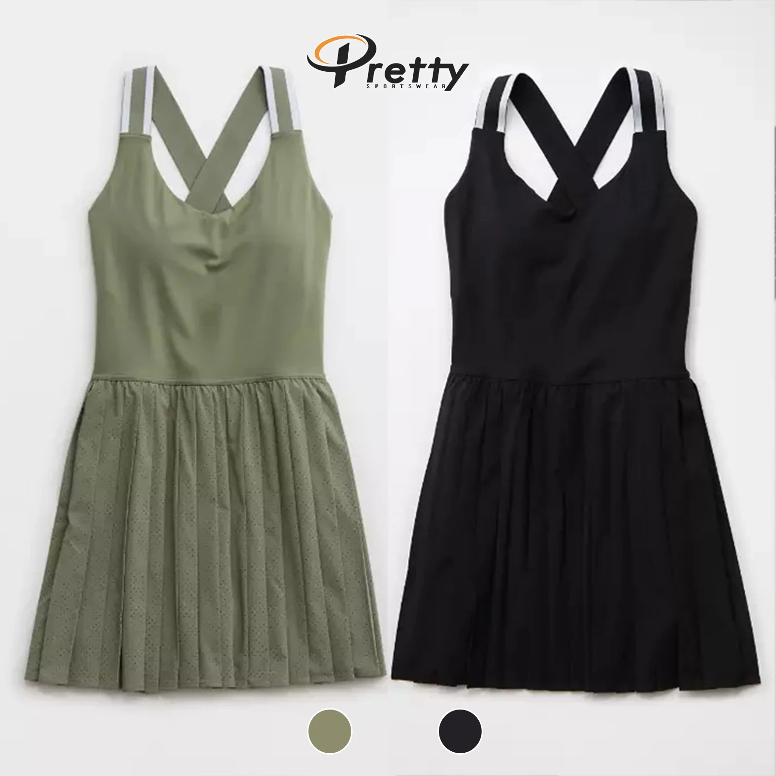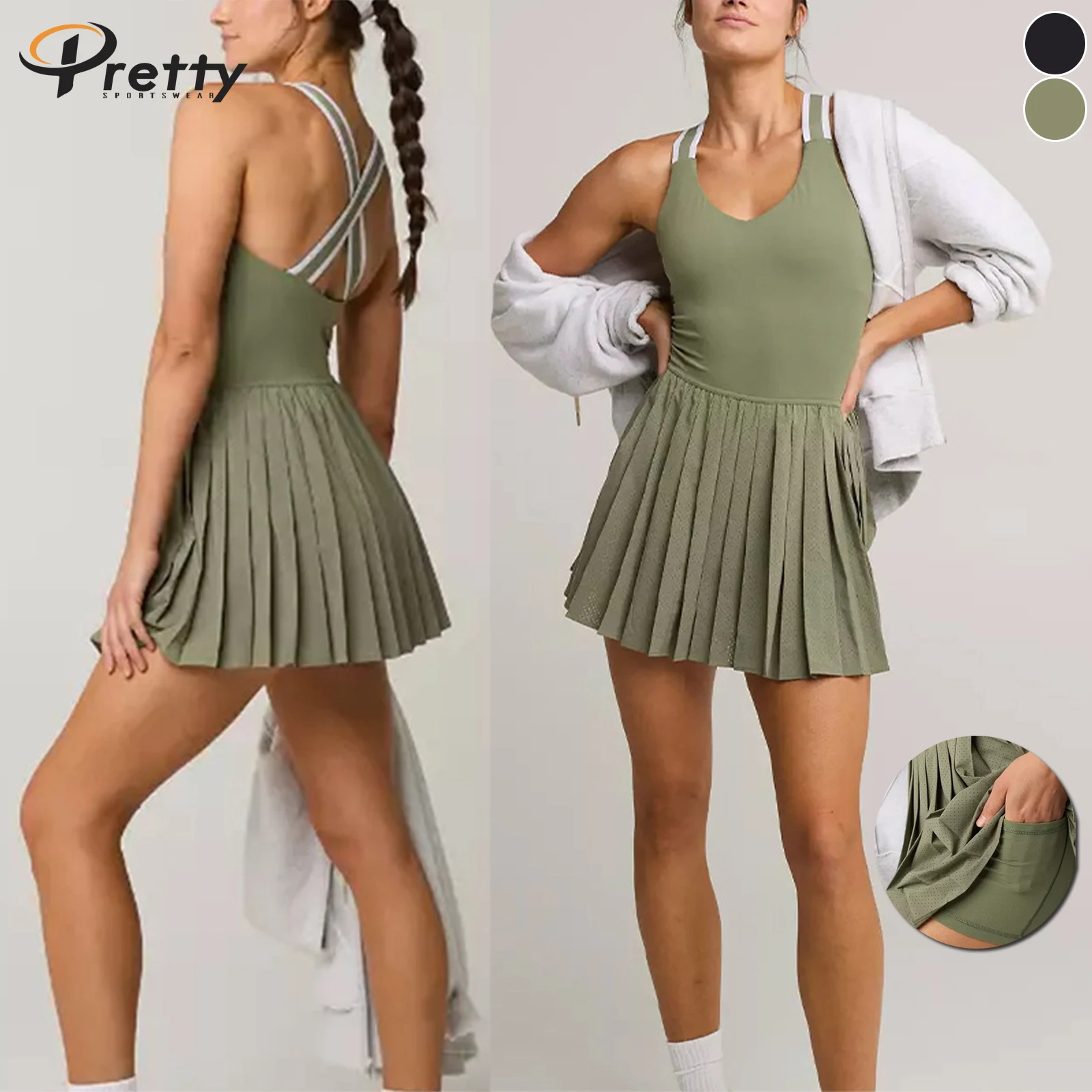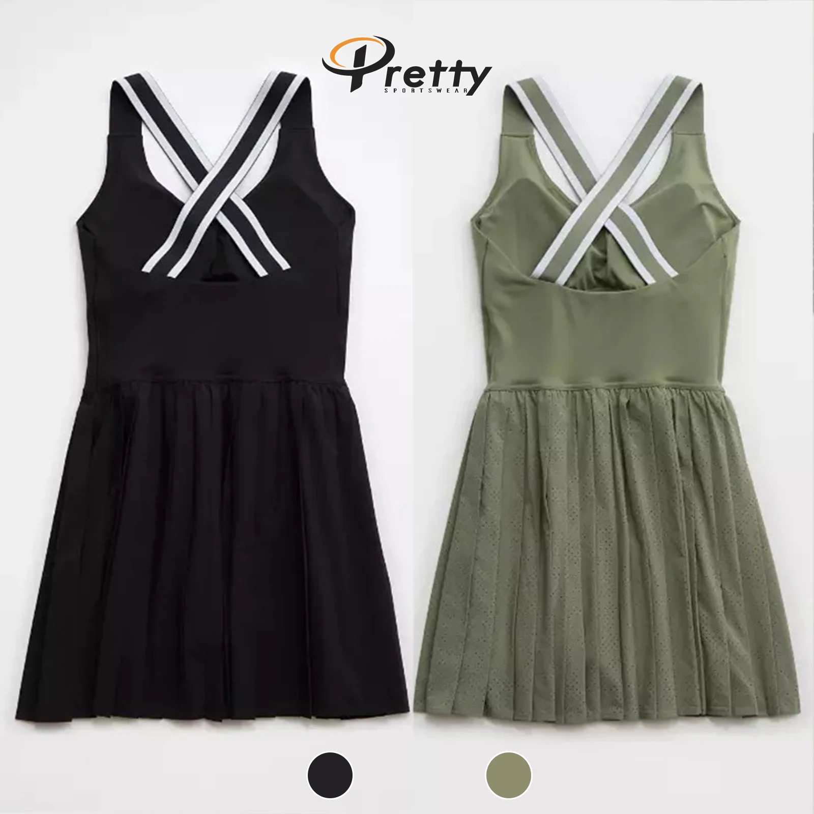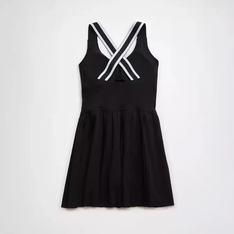 Women's Match Color Cross Back Tennis Skirt Quick Dry Sportswear Breathable Sports Pleated Skirt Anti-shine Pad One-piece Skirt
