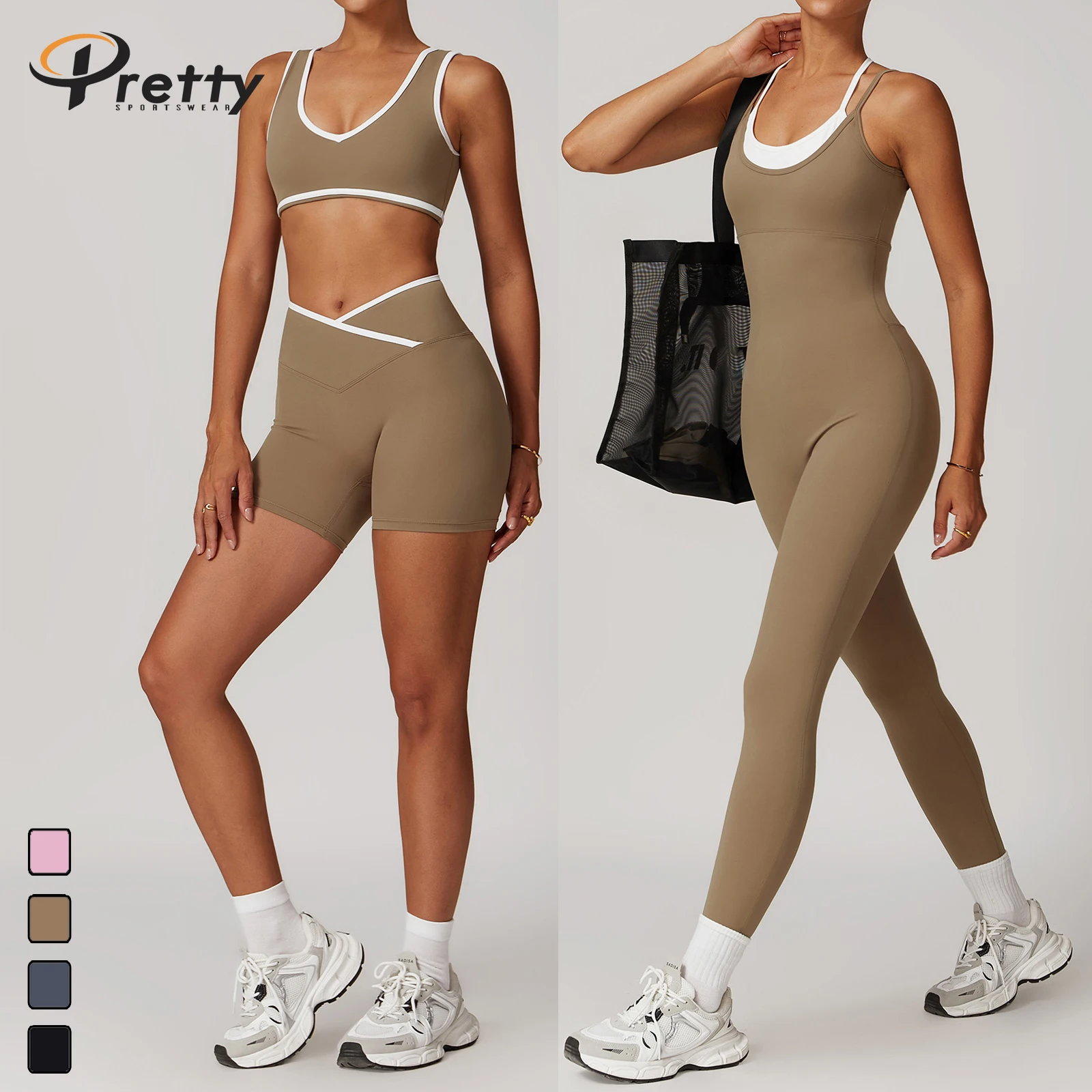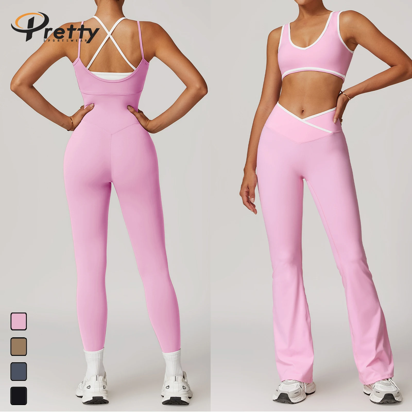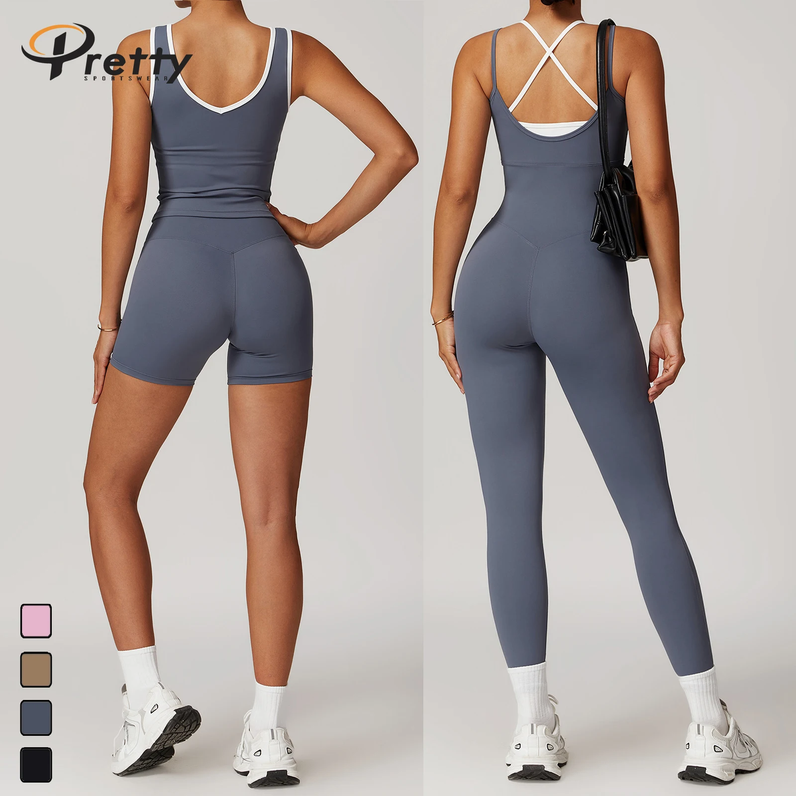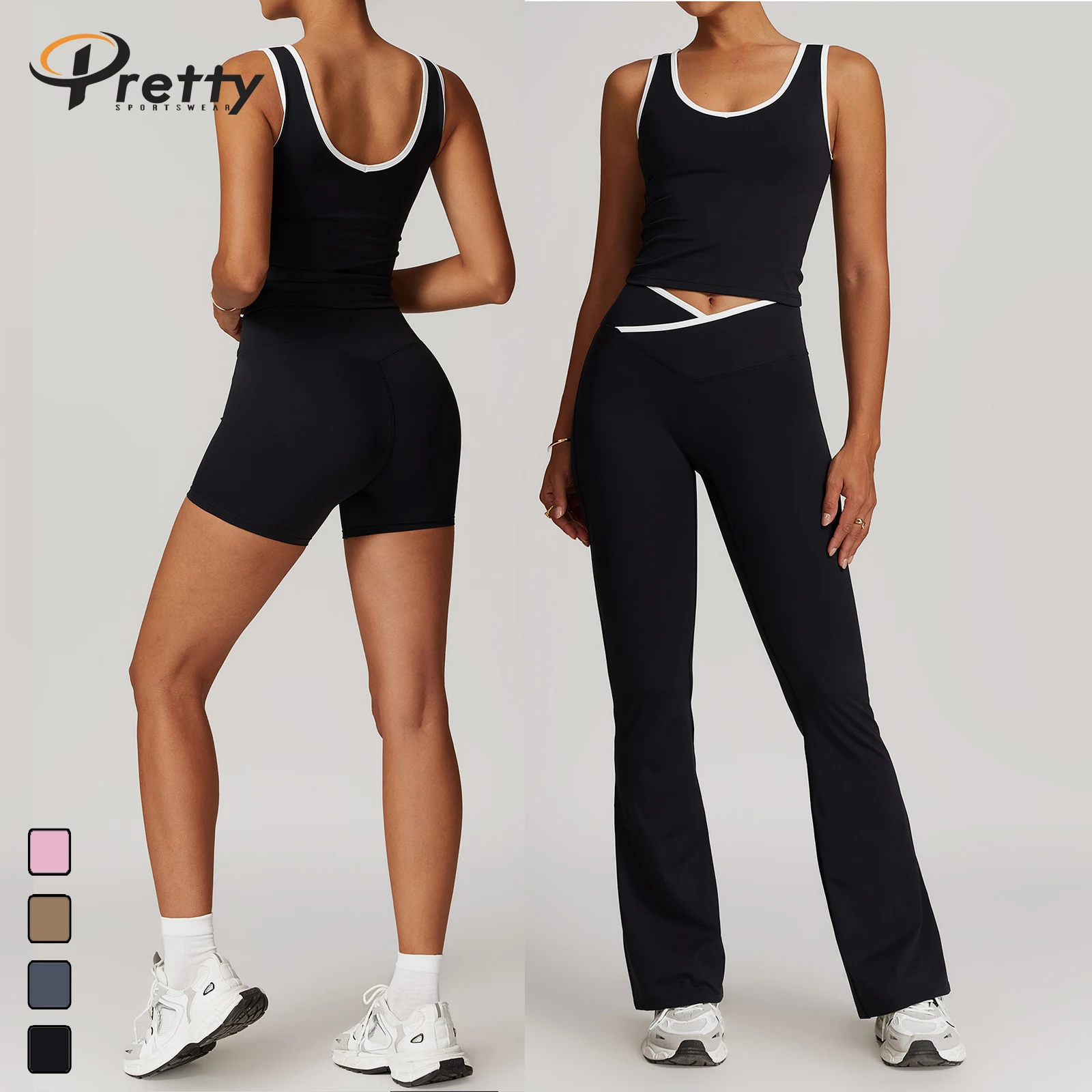 Woman 2 in 1 Beauty Black Jumpsuit Women Gym Fitness Suit Sexy Shorts Workout Sets High Waist Flared Pants Gym Vest Bodysuits