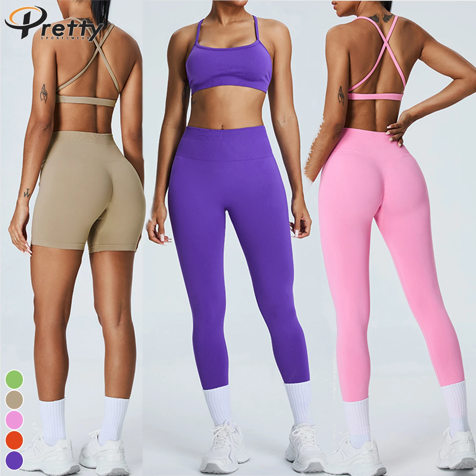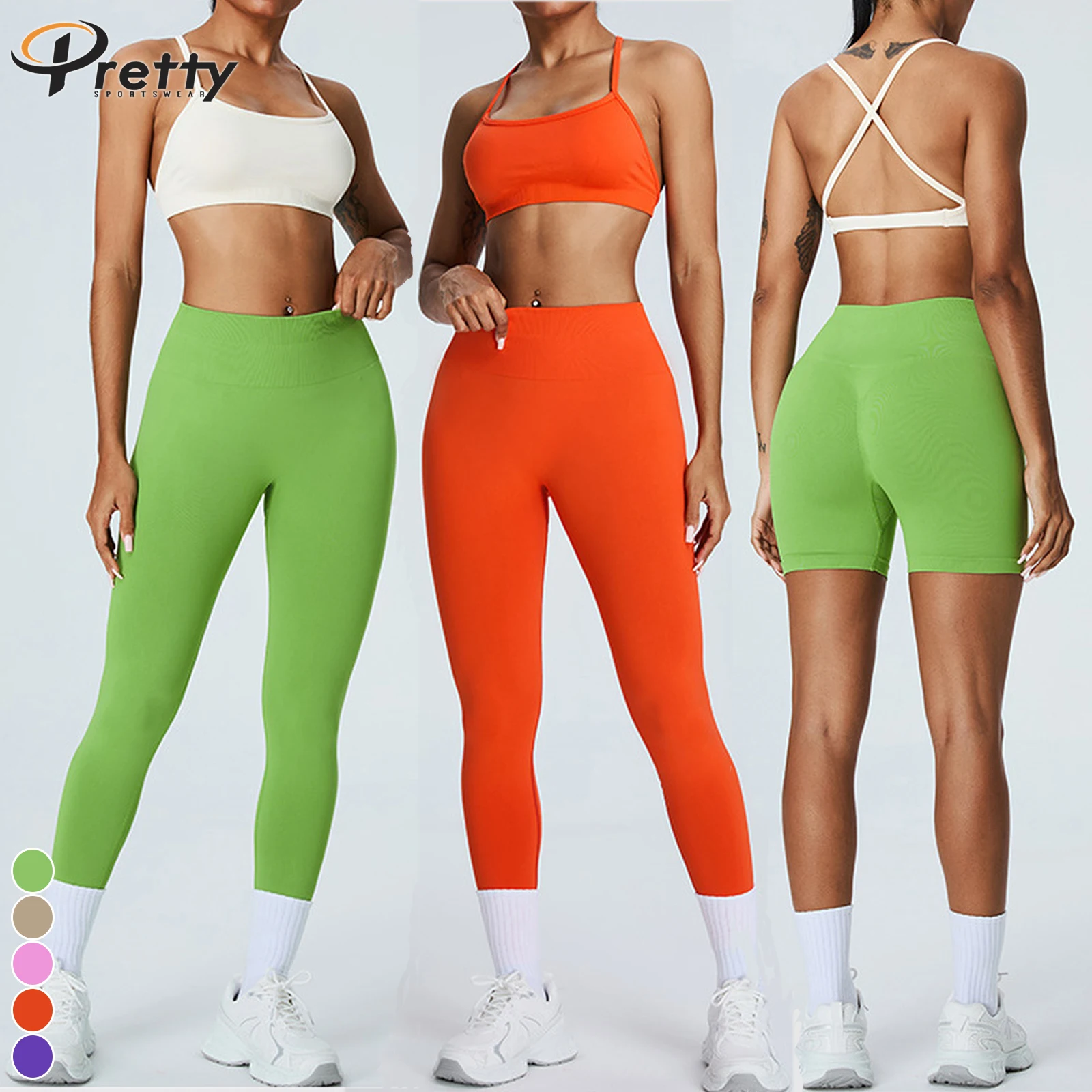 Women's 3pcs Fitness Suit 4 Way Stretch Seamless Activewear Beauty Back Sports Bra Hip Lift PantsTummy Control Shorts Slim Fit