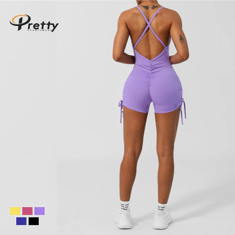 Wholesales One Piece V-neck Women Jumpsuits Overalls Sexy Gym Fitness Women Ribbed Seamless Skinny Bodysuit