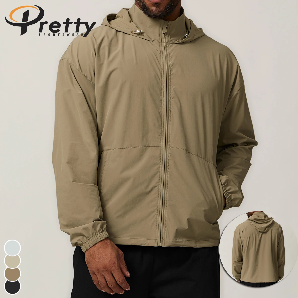 Men's Zipper Hooded Outdoor Waterproof Jacket Hiking Camping Jacket Citywalk Smart Casual Workout Sports Windproof Hardshell