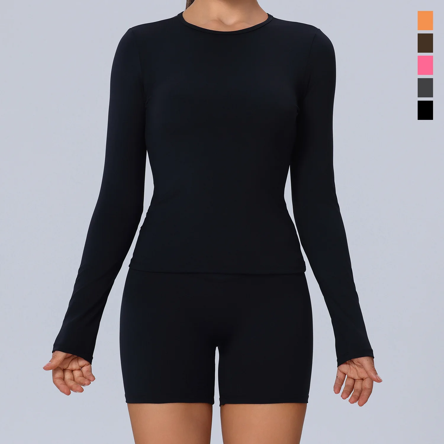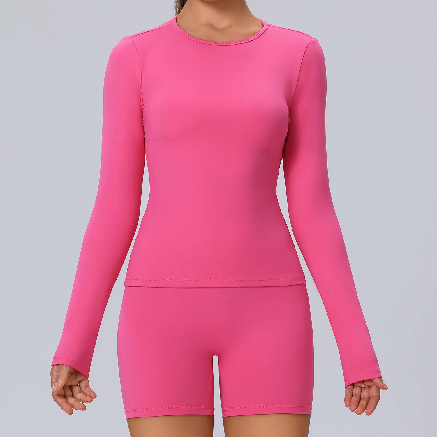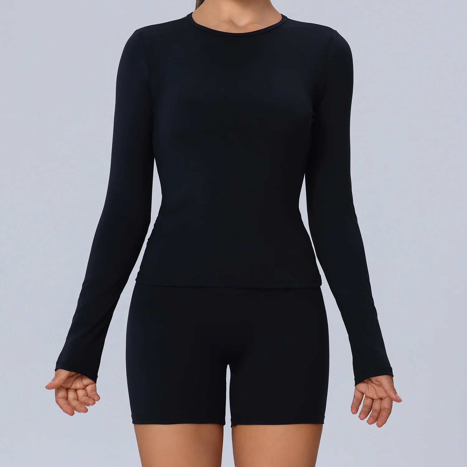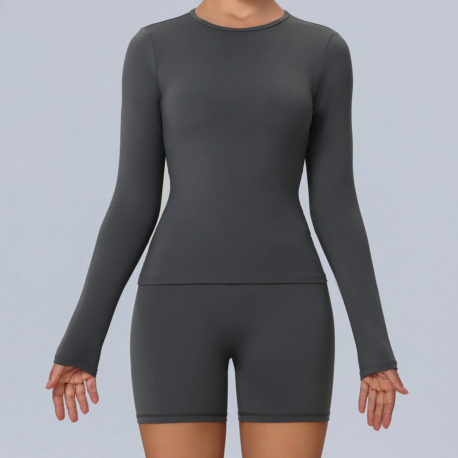 Plus Size Workout Womens Clothing 2 PCS Yoga Sets Gym Fitness Tights Long Sleeve Yoga Tops Tummy Control Yoga Shorts For Women