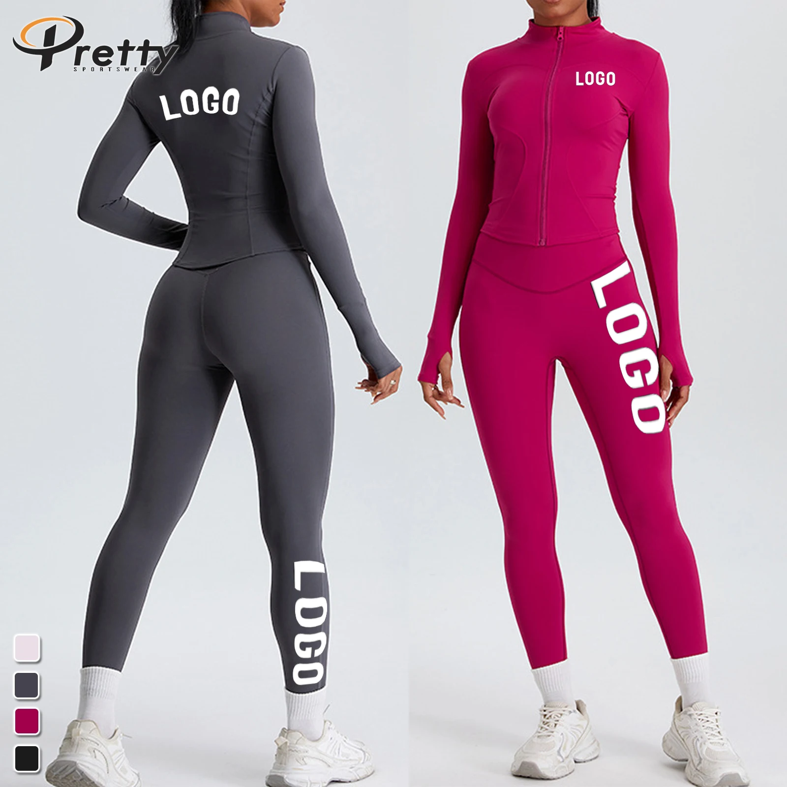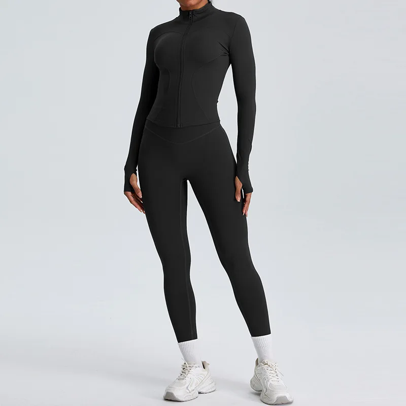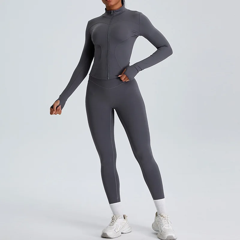Zipper Yoga Jacket Long Sleeve Women's Running Training Slim Standing Collar Sports Coat Outdoor Fitness Clothes