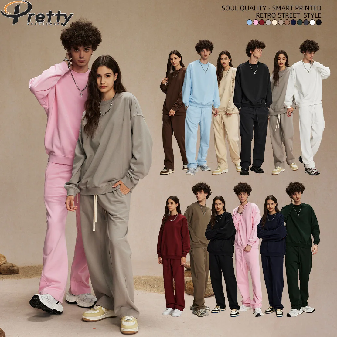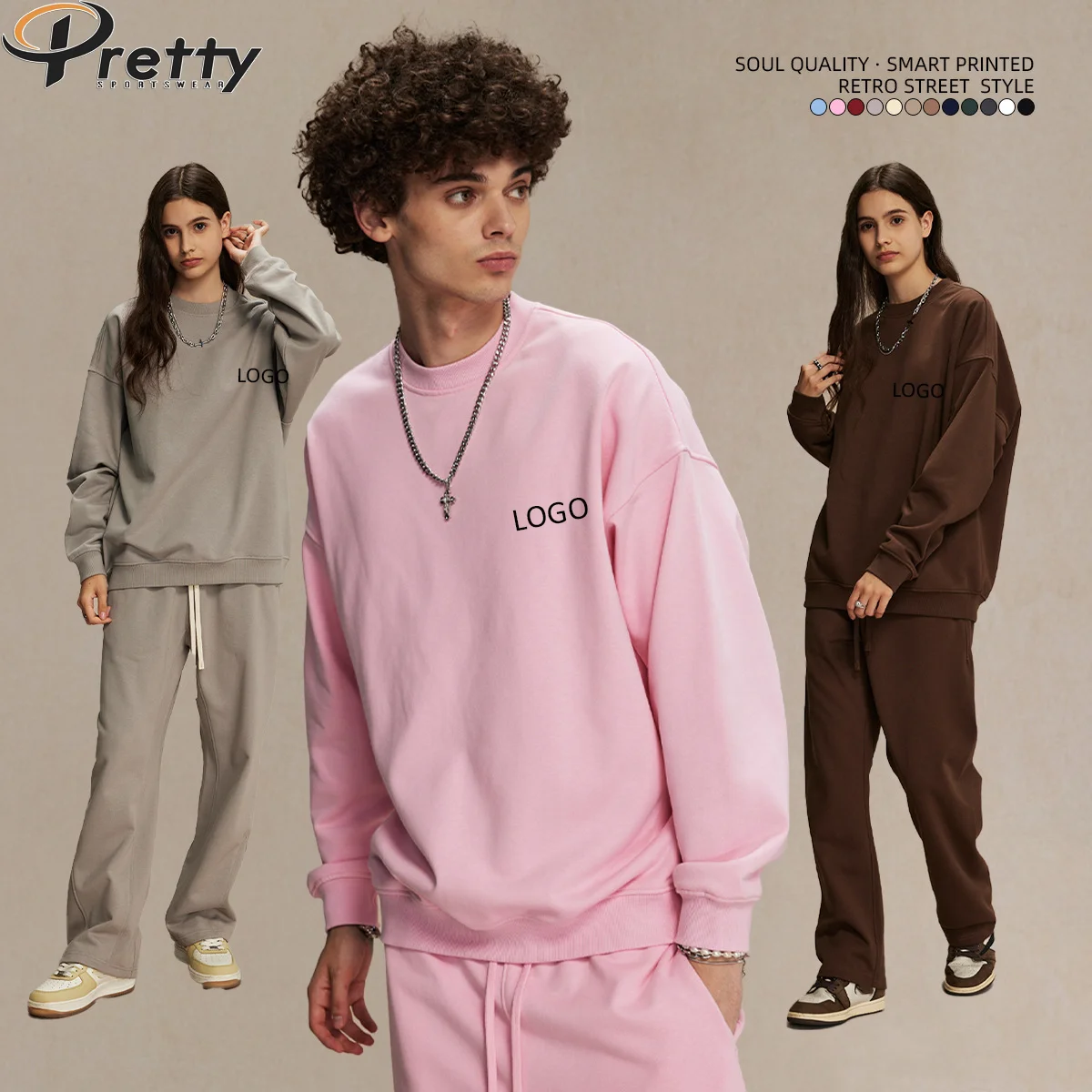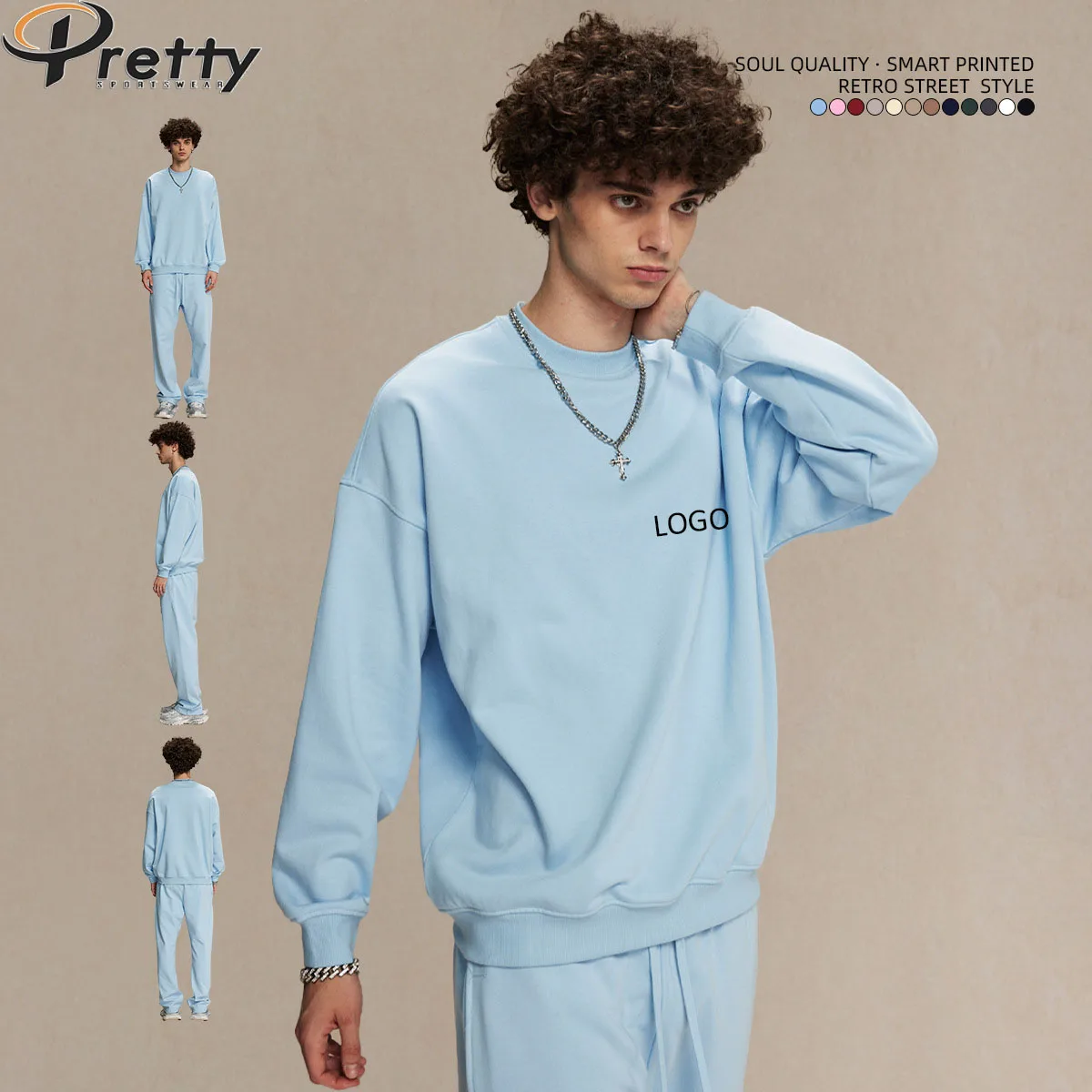 Hot Sale Custom Mens Clothing Plus Size Regular Fit Unisex 430G O-Neck Long Sleeve High Street French Terry Sweatshirts For Men