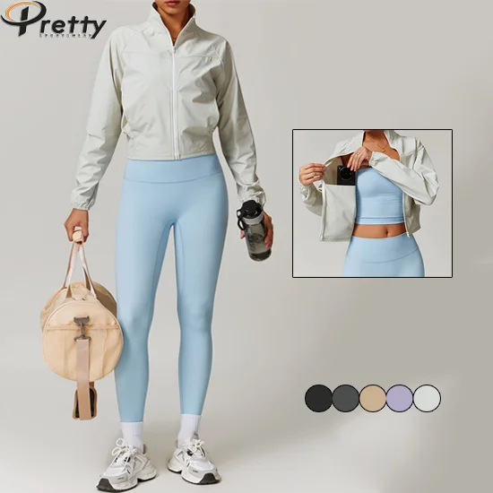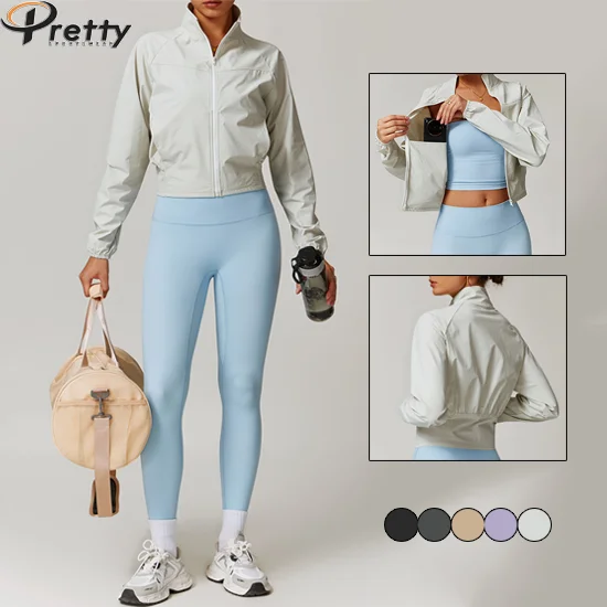 2024 Womens Clothing Active Wear Windproof Jacket Long Sleeve Yoga Tops For Women Quick Dry Coat Outdoor Sportswear Gym Fitness