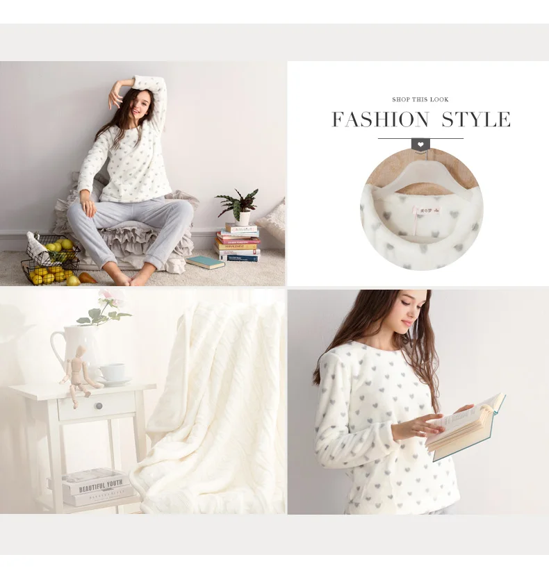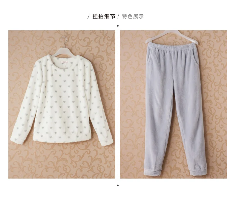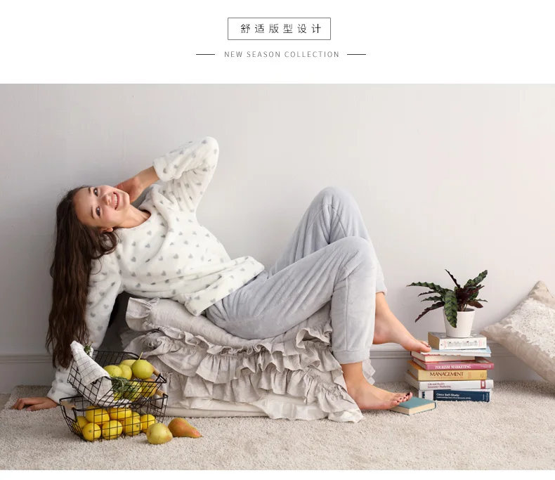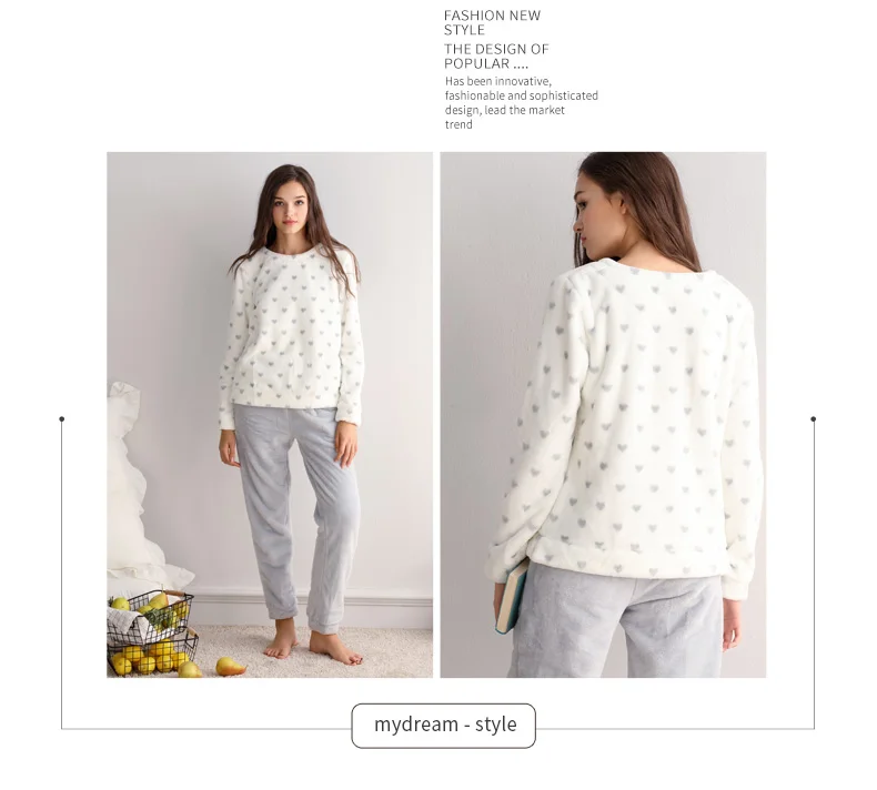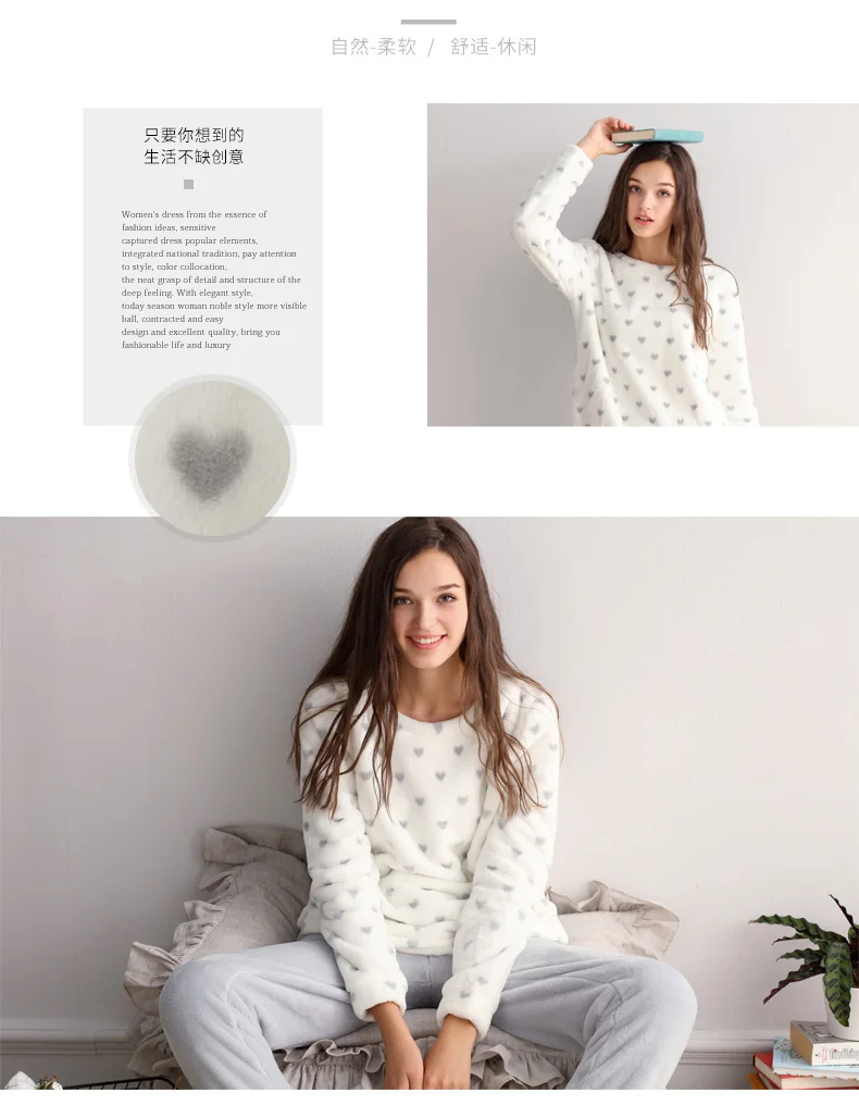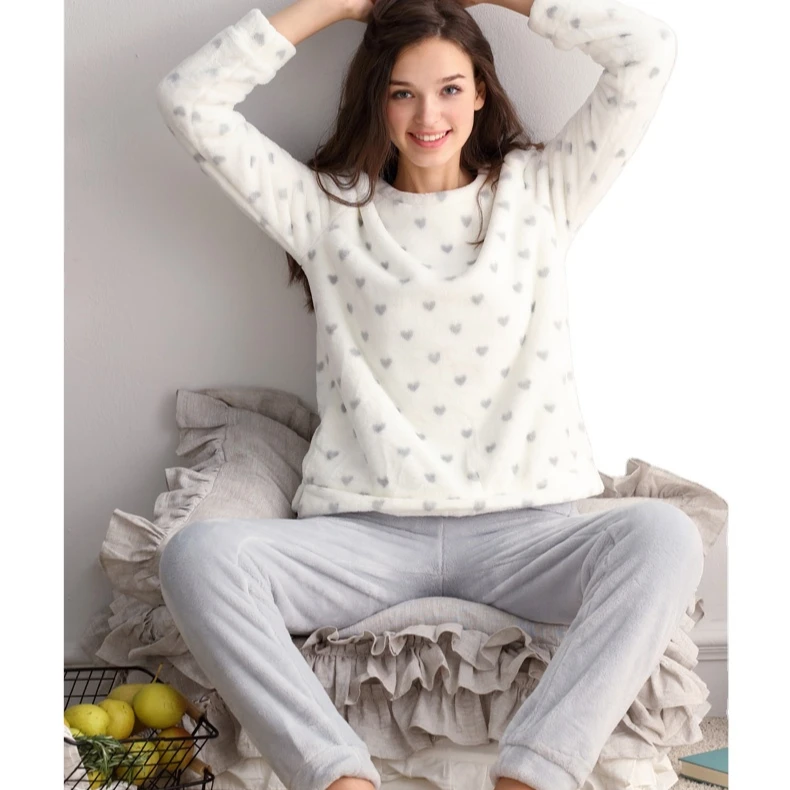 Jersey Fleece Women's Sleepwear Winter Warm Flannel Soft Pajamas With Long Sleeves Waistband Pant Girls' Sleepwear