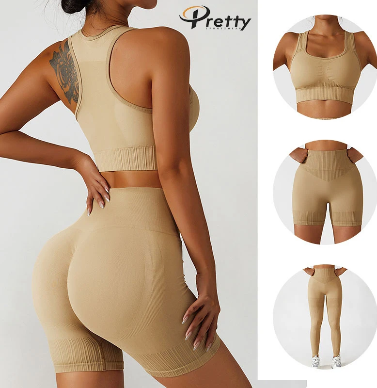 2024 New Arrivals Custom Logo 3 Pieces Women Gym Fitness Sets Clothing Yoga Set Free Match Fitness Women Clothing