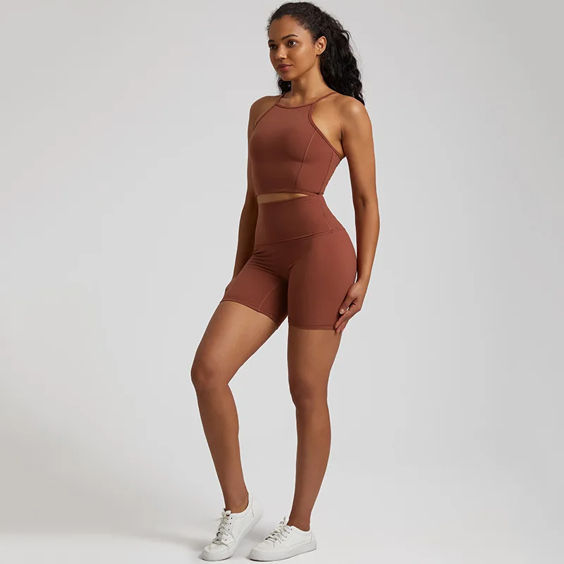 Hot Selling Wholesale Custom Logo Women High Waist Fitness Gym Wear Workout Suit Sport Bra and Shorts Yoga Set