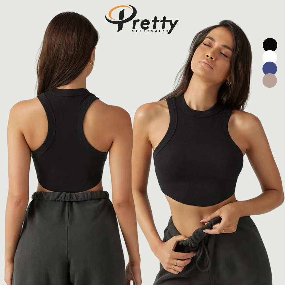 2024 Hot Sales Custom Logo High Quality Basic Top Women Tank Tops Push Up Top Vest Gym Workout Clothes With Padded Chest