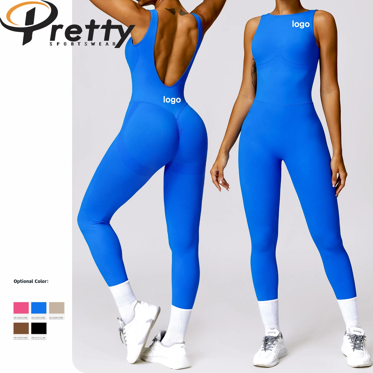 Customized Seamless Women's Jumpsuit Tummy Control Fitness Bodysuit Open Back Hip Lifting Scrunch One-Piece Rompers For Women