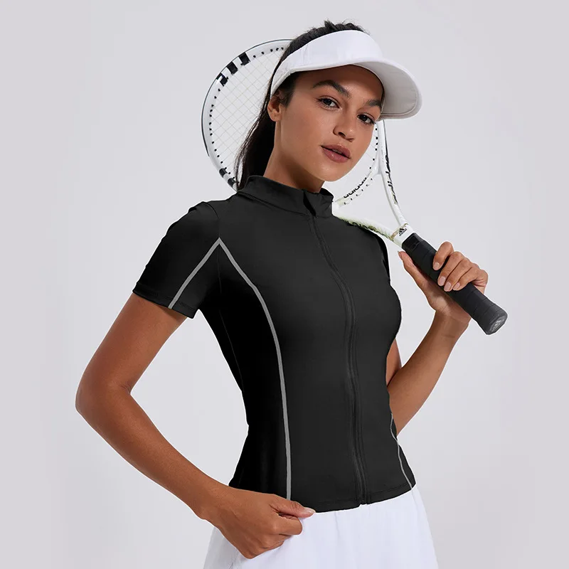 Womens Clothing Sportswear Workout Gym Fitness Tight Slim Zipper High Quality Sjort Sleeve Polo Tshirts For Women Golf Outfits