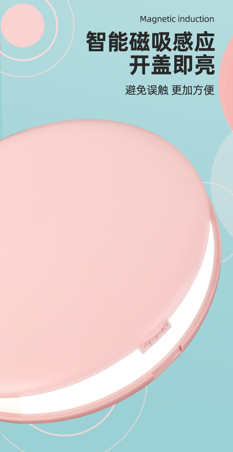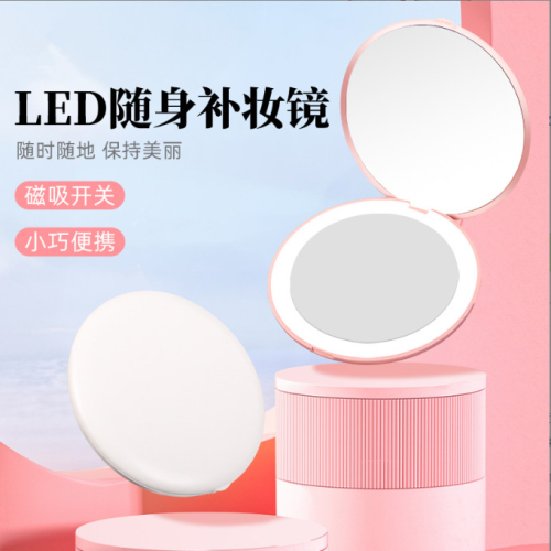 led folding small round mirror (pink) rechargeable
