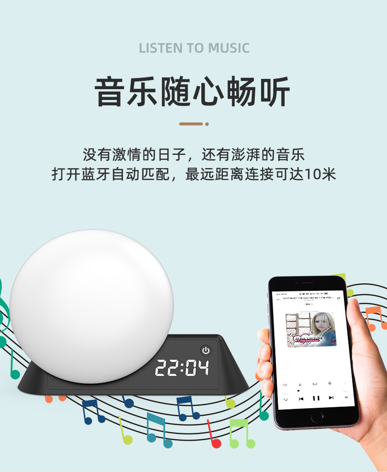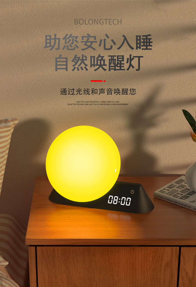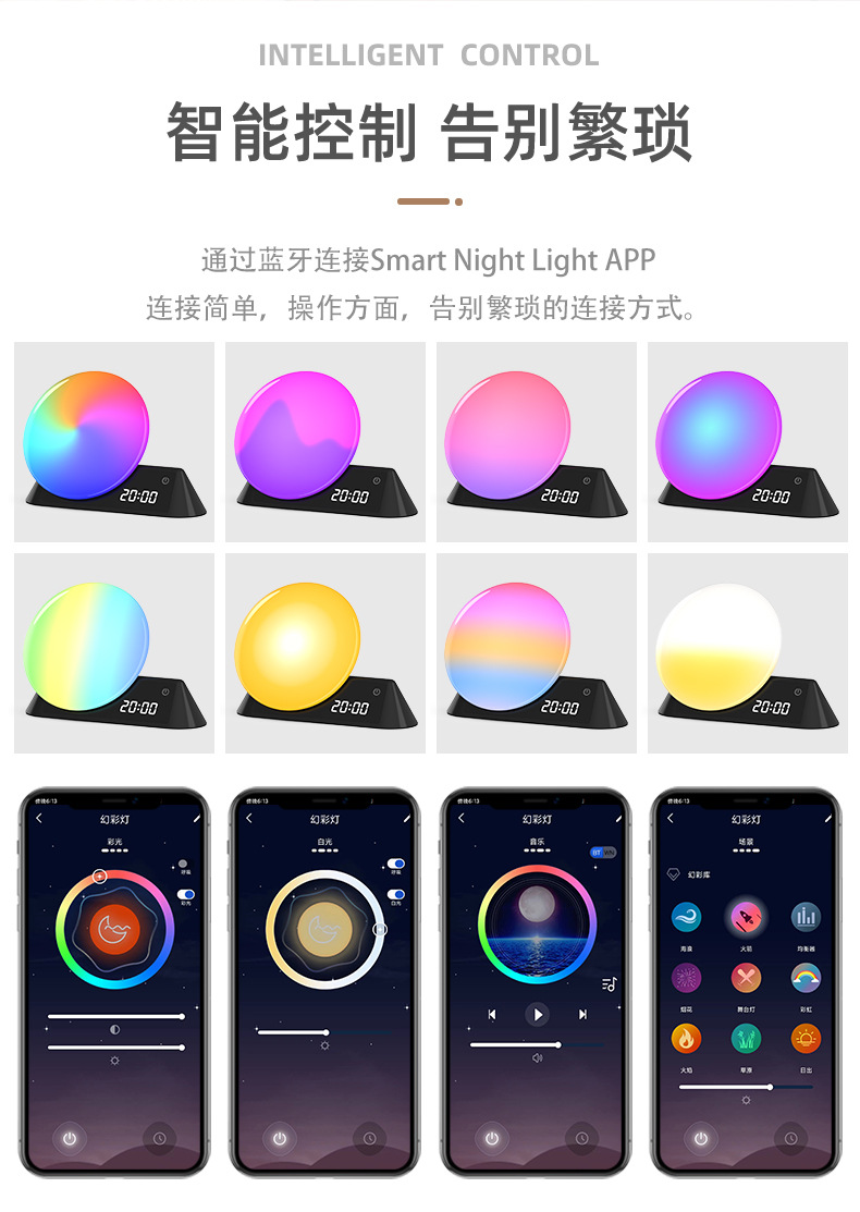 simulated sunrise and sunset magic color wake-up light mobile app control white noise alarm bedside sleeping ambience light