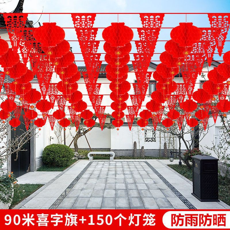 80 m red rope colorful flags +50 lantern with xi character