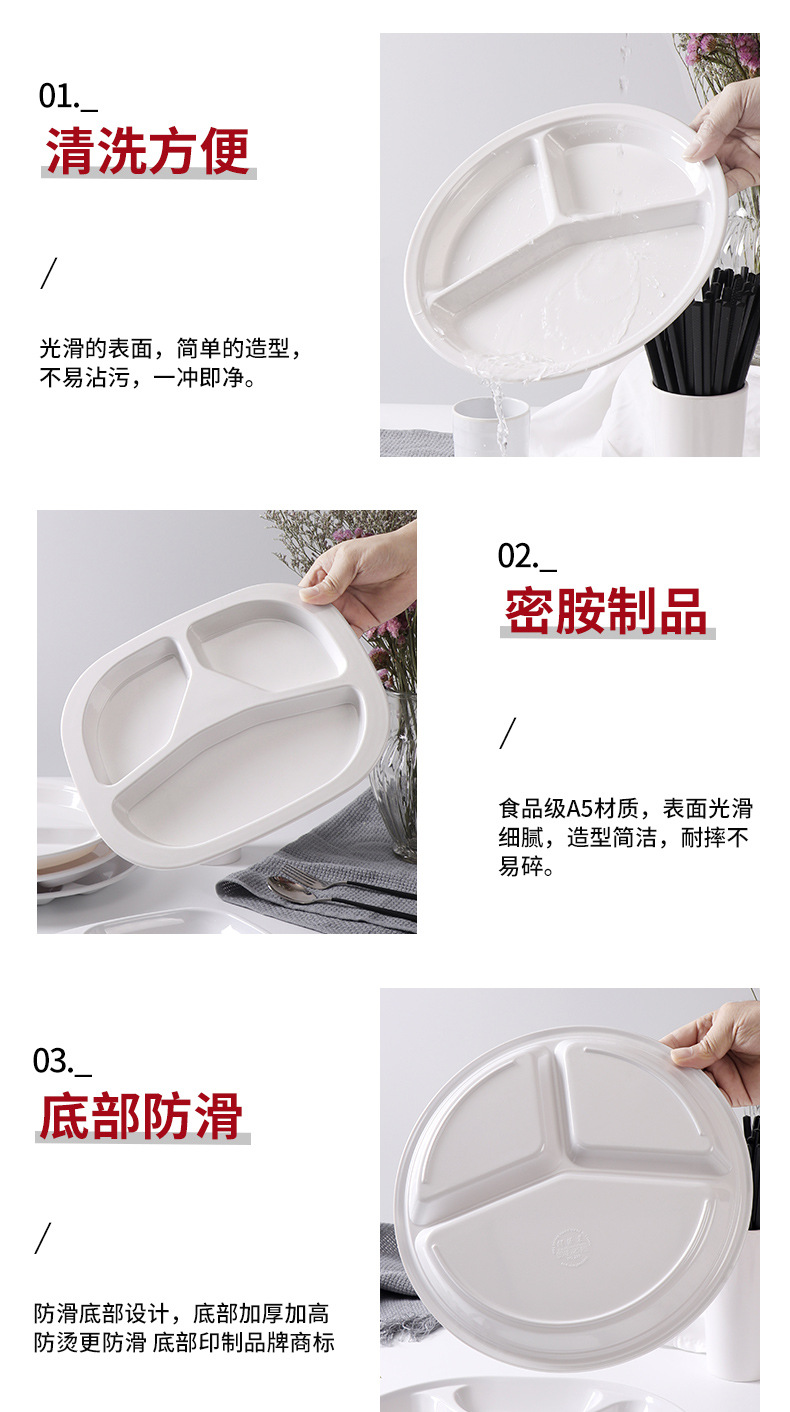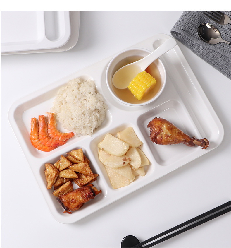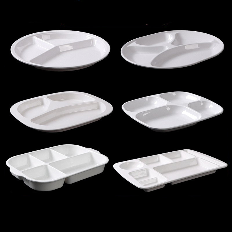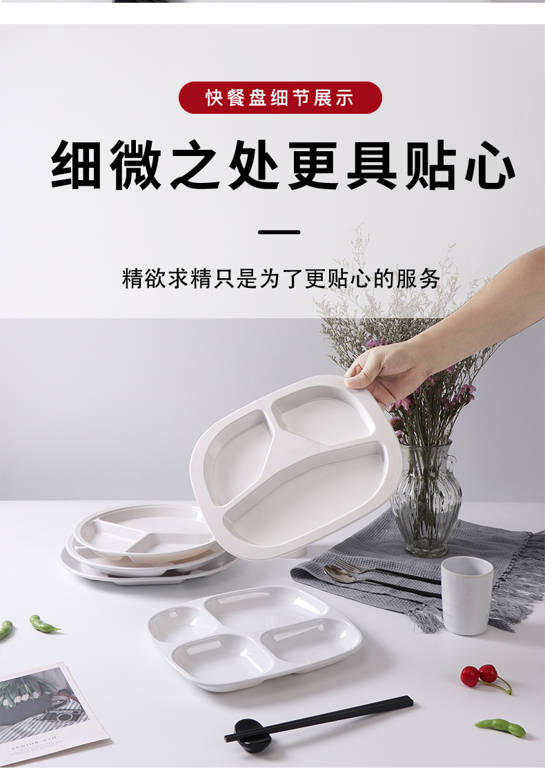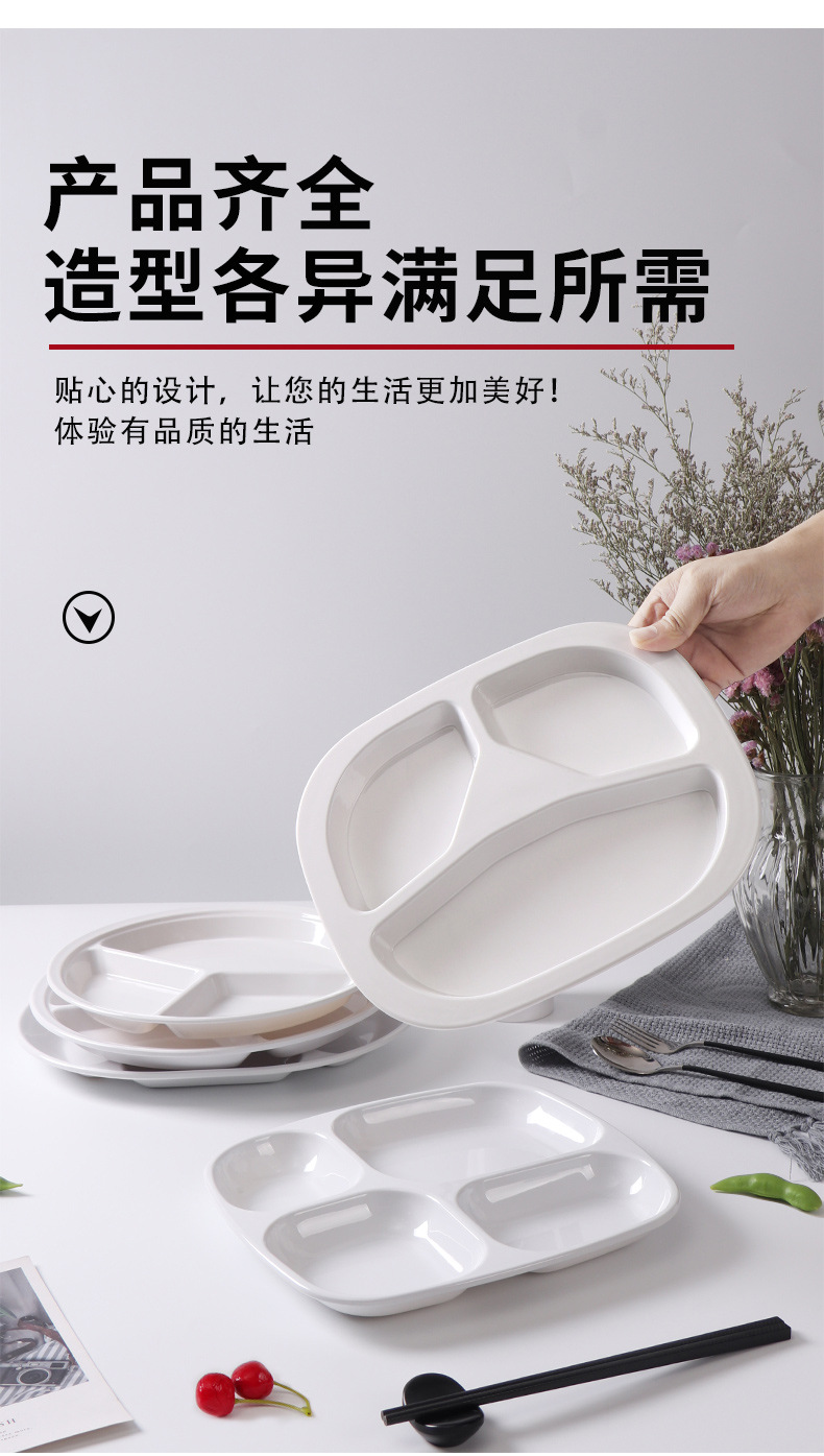 melamine tableware commercial six-grid multi-grid fast food plate factory canteen school restaurant white buffet compartment dinner plate 中文版