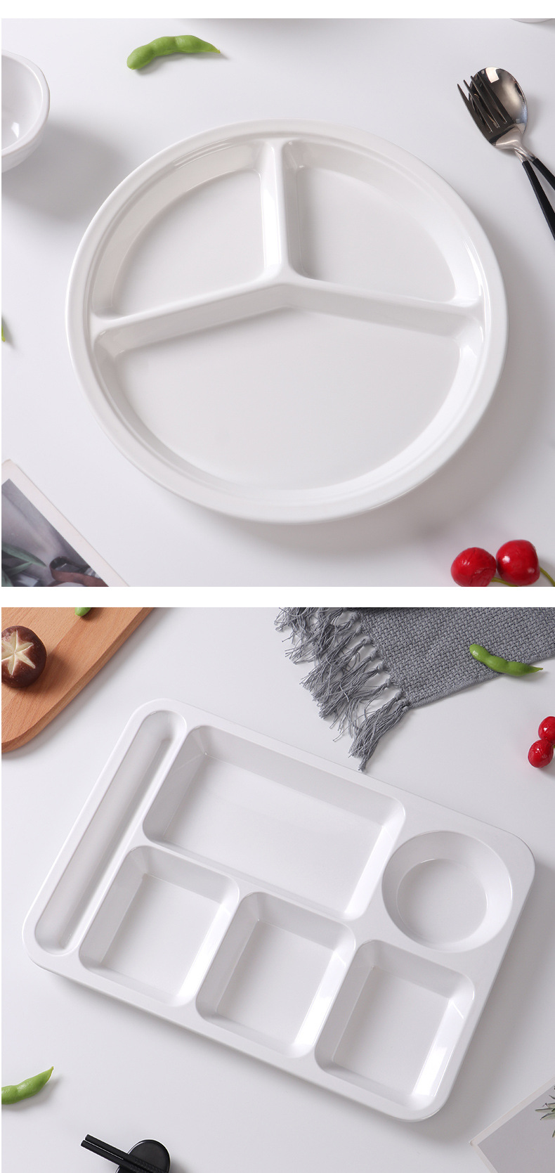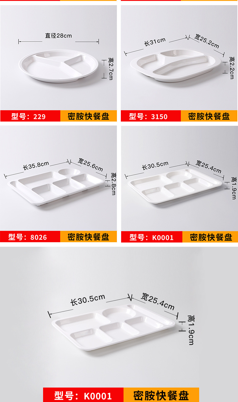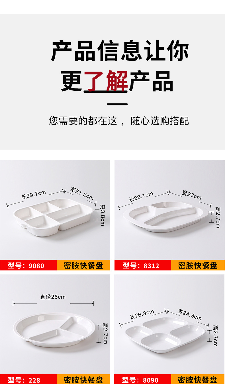 melamine tableware commercial six-grid multi-grid fast food plate factory canteen school restaurant white buffet compartment dinner plate 中文版