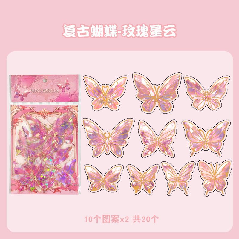 fantasy butterfly dance laser gold foil stickers pack transparent waterproof pet journal stickers cross-border retro butterfly stickers
