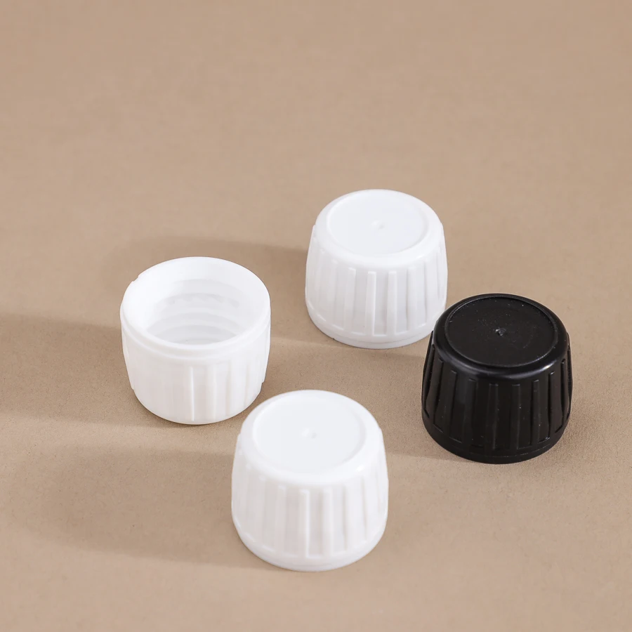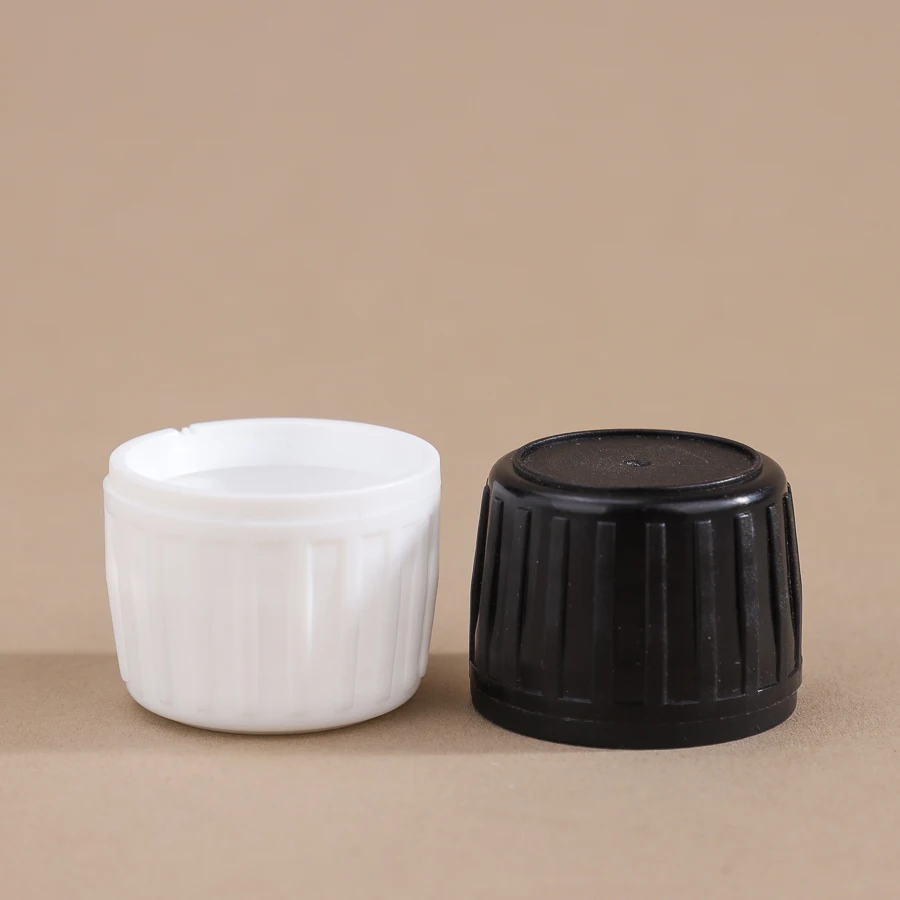 Wholesale Black 28 mm Glass Bottle Tamper Evident Cap Plastic Lids Ribbed Side For Syrup Bottles