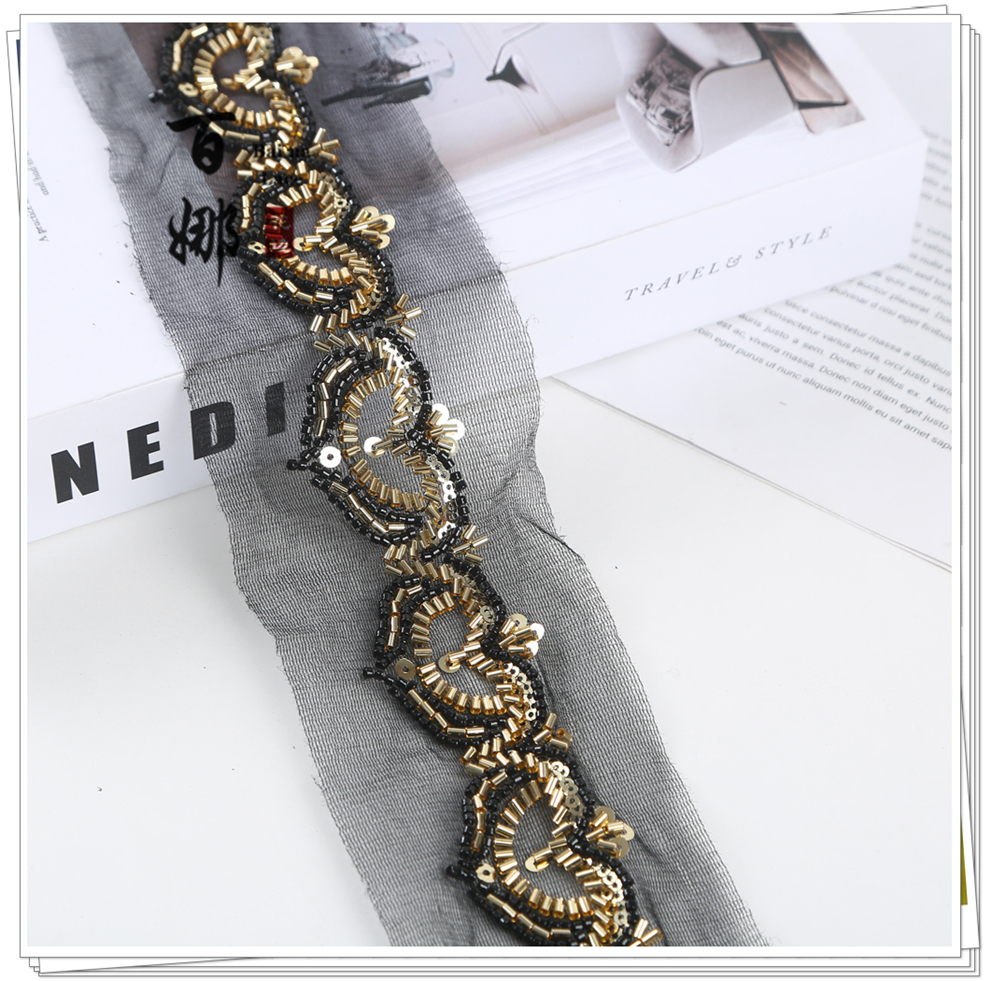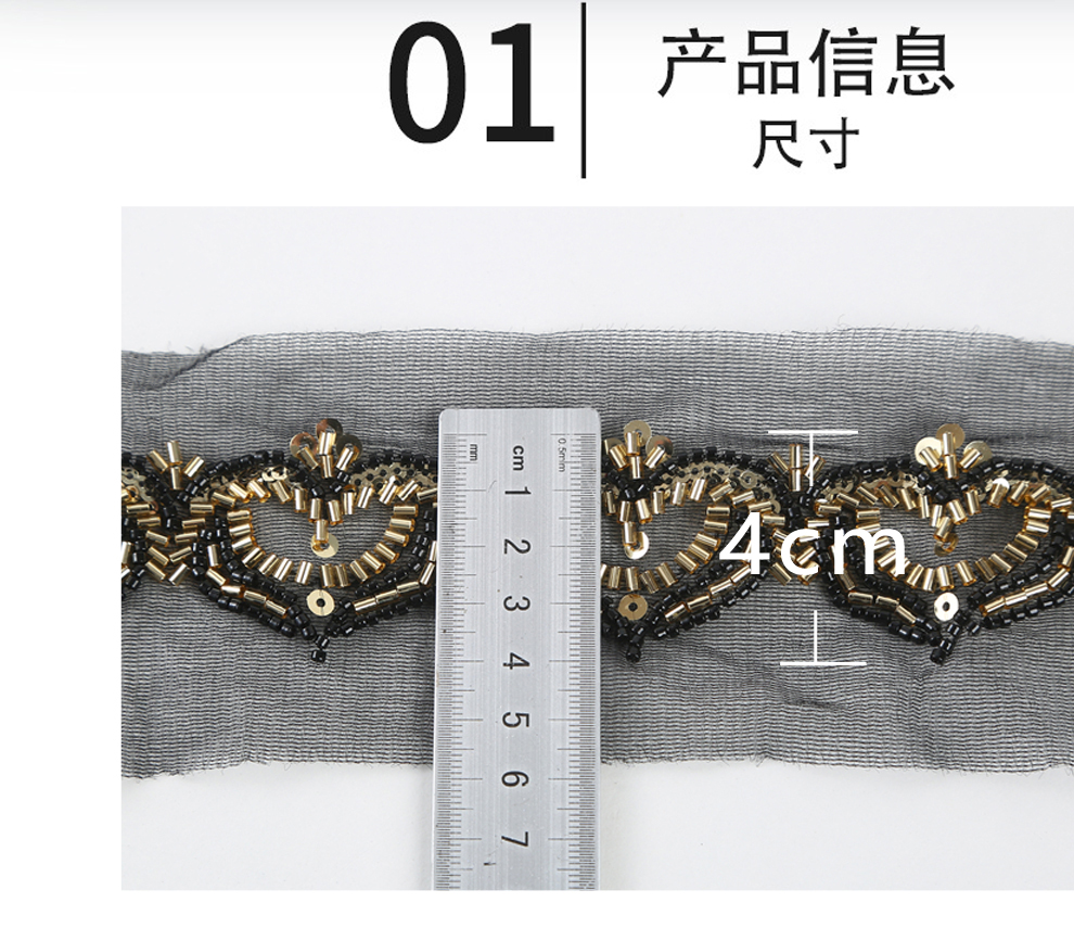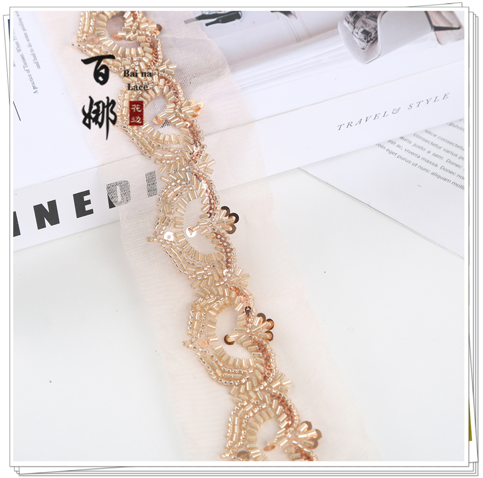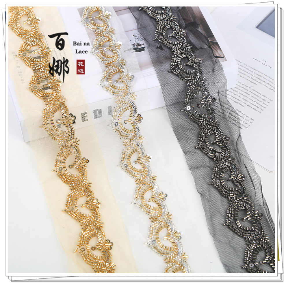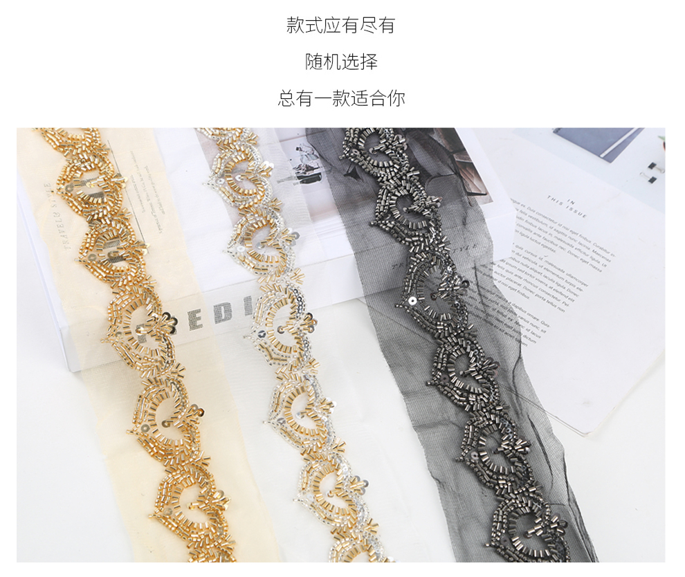Product Name: Net Shade Bottom Heart-shaped Bead Tube Machine Embroidery Edge Headscarf Stage Dress Open-front Hanfu Collar Decorative Accessories