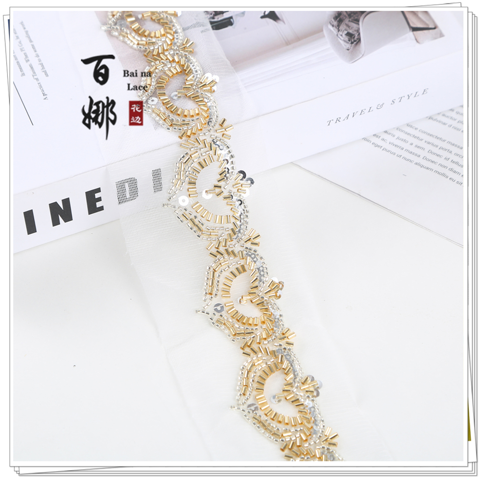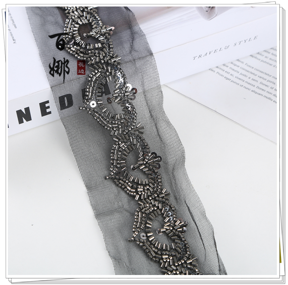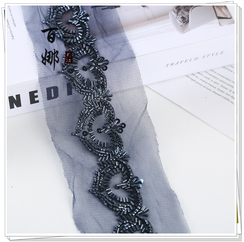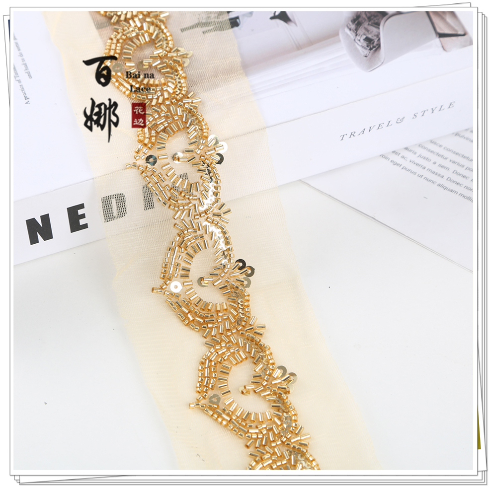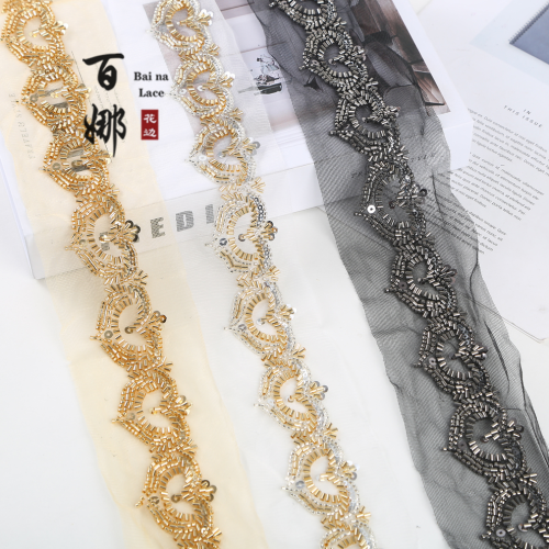 Product Name: Net Shade Bottom Heart-shaped Bead Tube Machine Embroidery Edge Headscarf Stage Dress Open-front Hanfu Collar Decorative Accessories