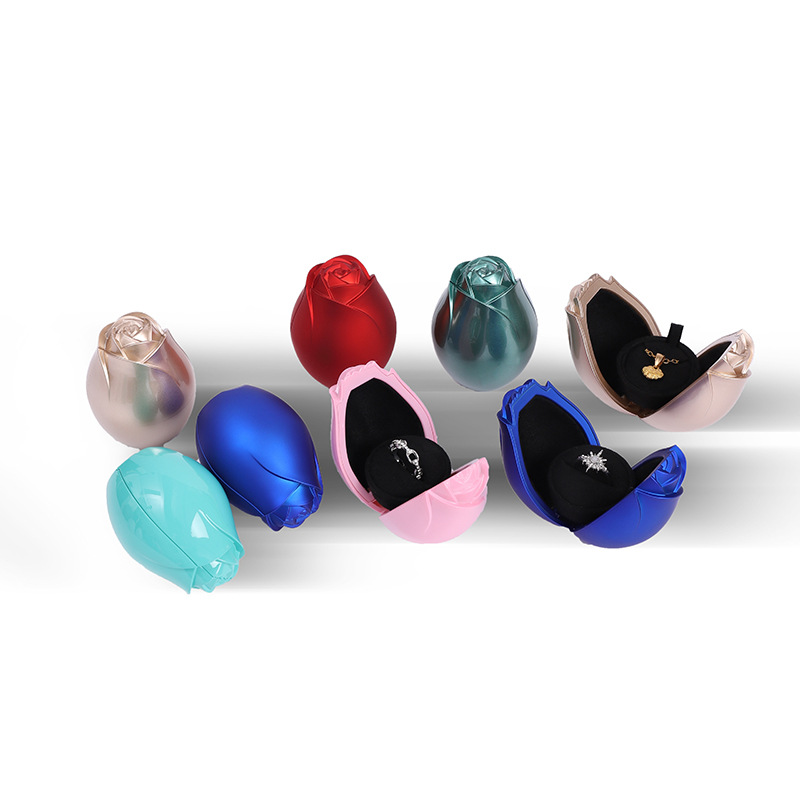 blue; double open rose ring jewelry box