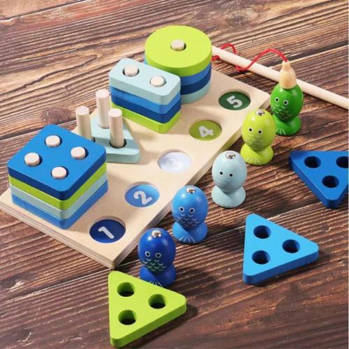 children's wooden geometric shaped sets of columns montessori early education perception building blocks matching four or five sets of column intelligence toys