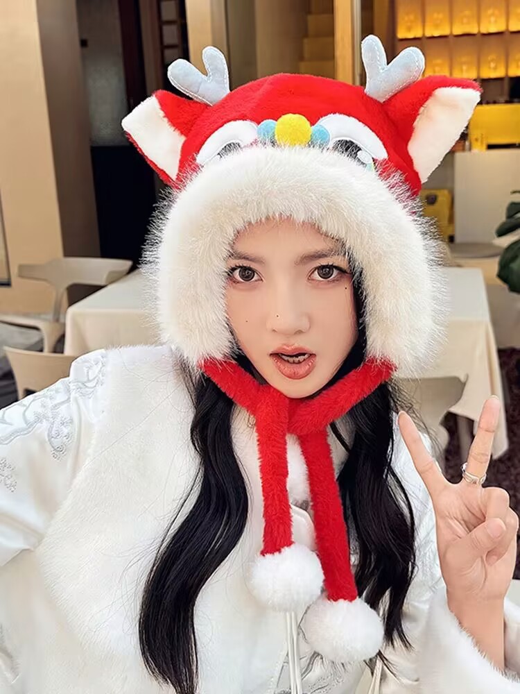 red and blue horn lion hat