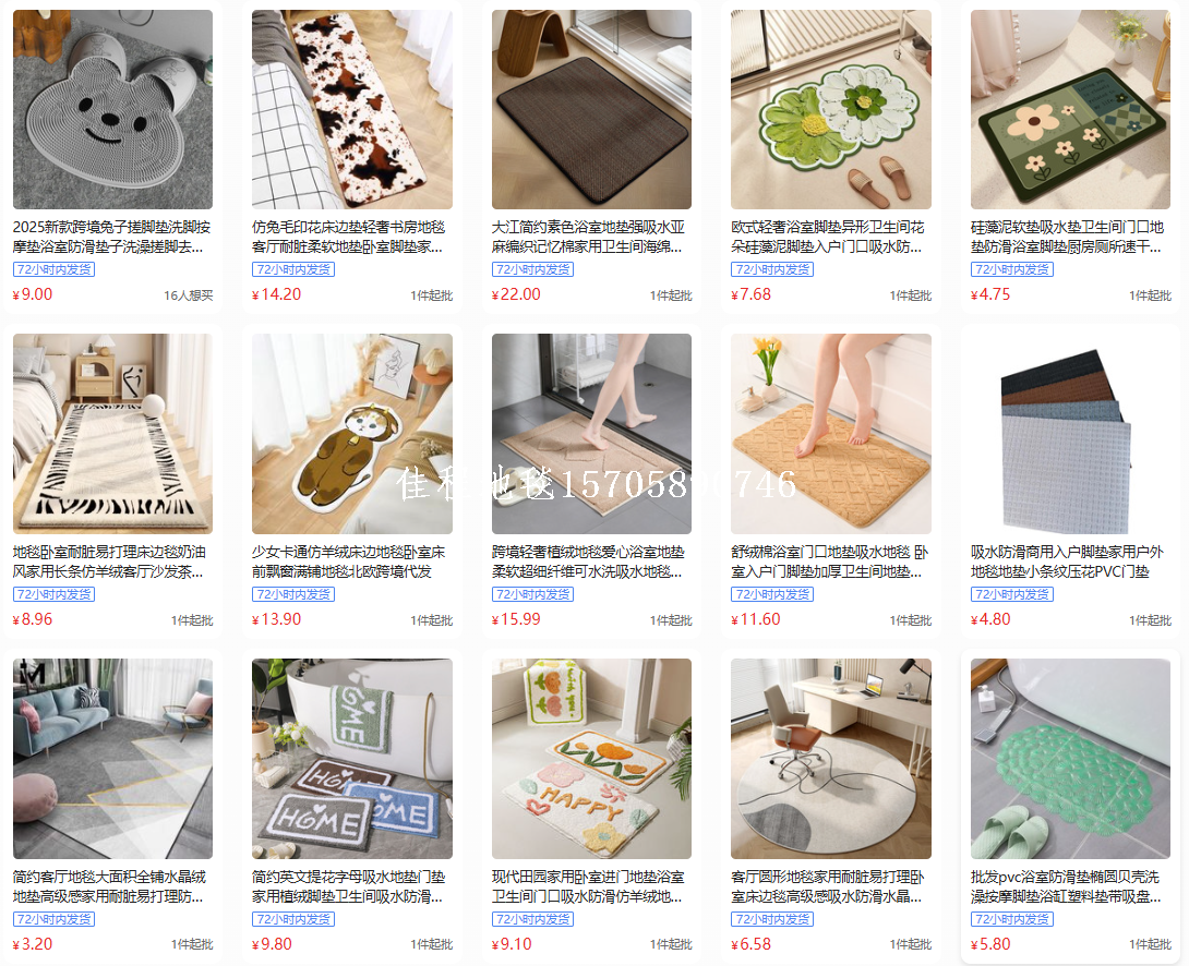 | Cross-border export bathroom mats, bathroom absorbent and anti-skid door mats, bedroom entrance mats, entrance mats, toilet dry and dirty-resistant carpets |