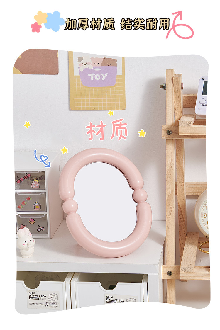 simple and light luxury mirror home desktop dressing table mirror student dormitory desktop cream color makeup mirror girl 中文版