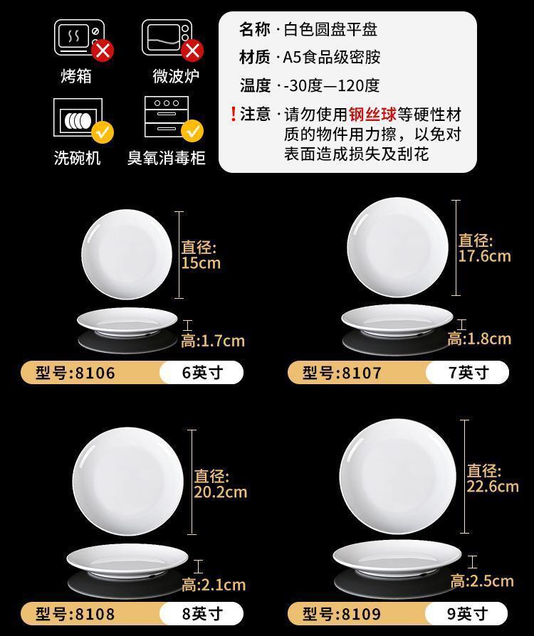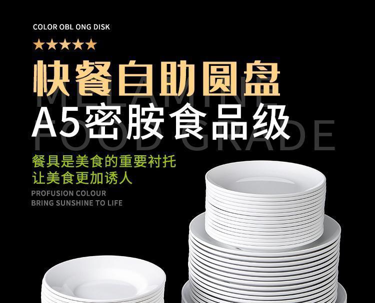 melamine tableware white plastic plate self-service round plate dinner plate plate dish disc shallow plate bone dish commercial use 中文版
