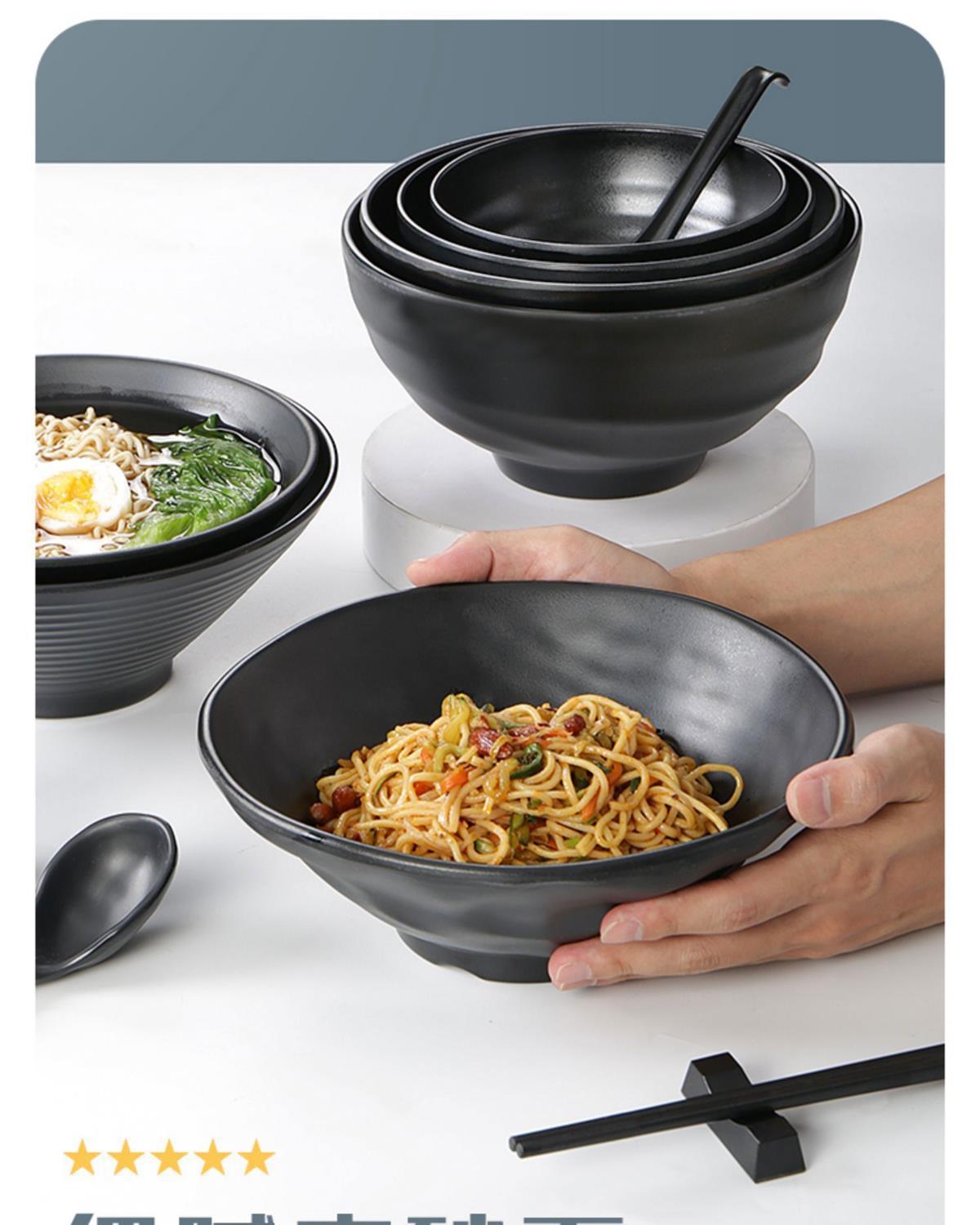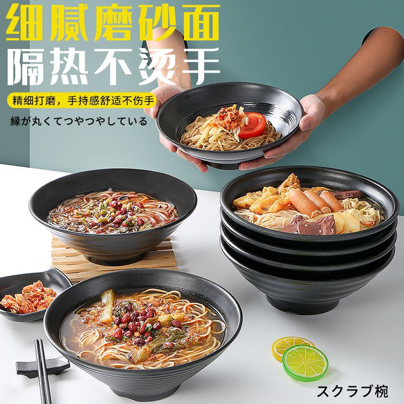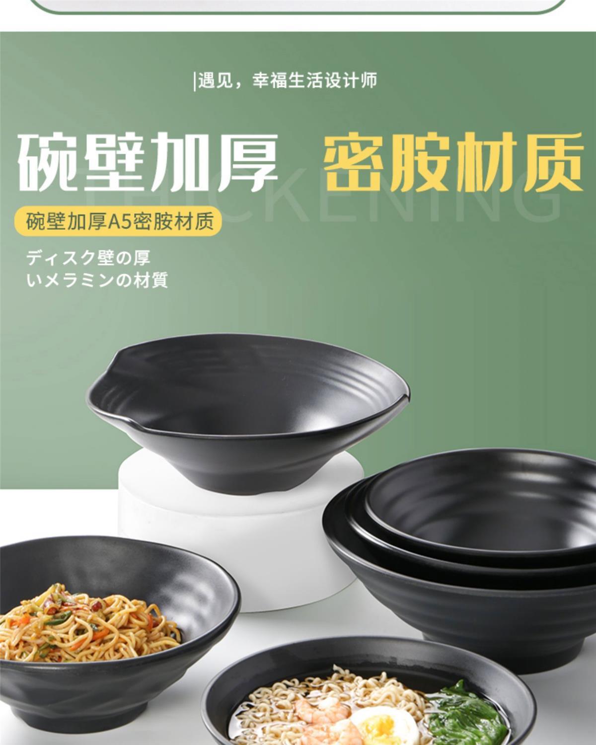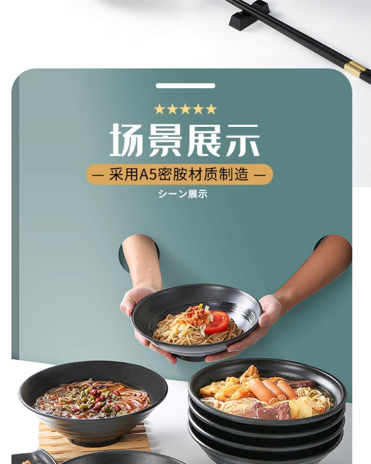 melamine frosted noodle bowl noodle restaurant tableware imitation porcelain spicy hot ramen rice noodles soup bowl plastic black large round bowl commercial 中文版