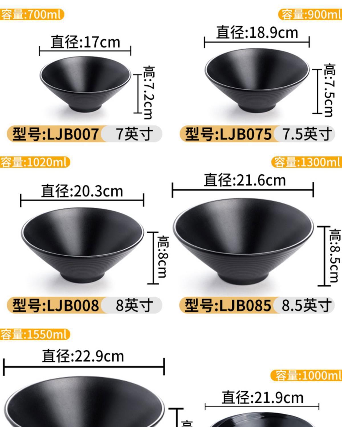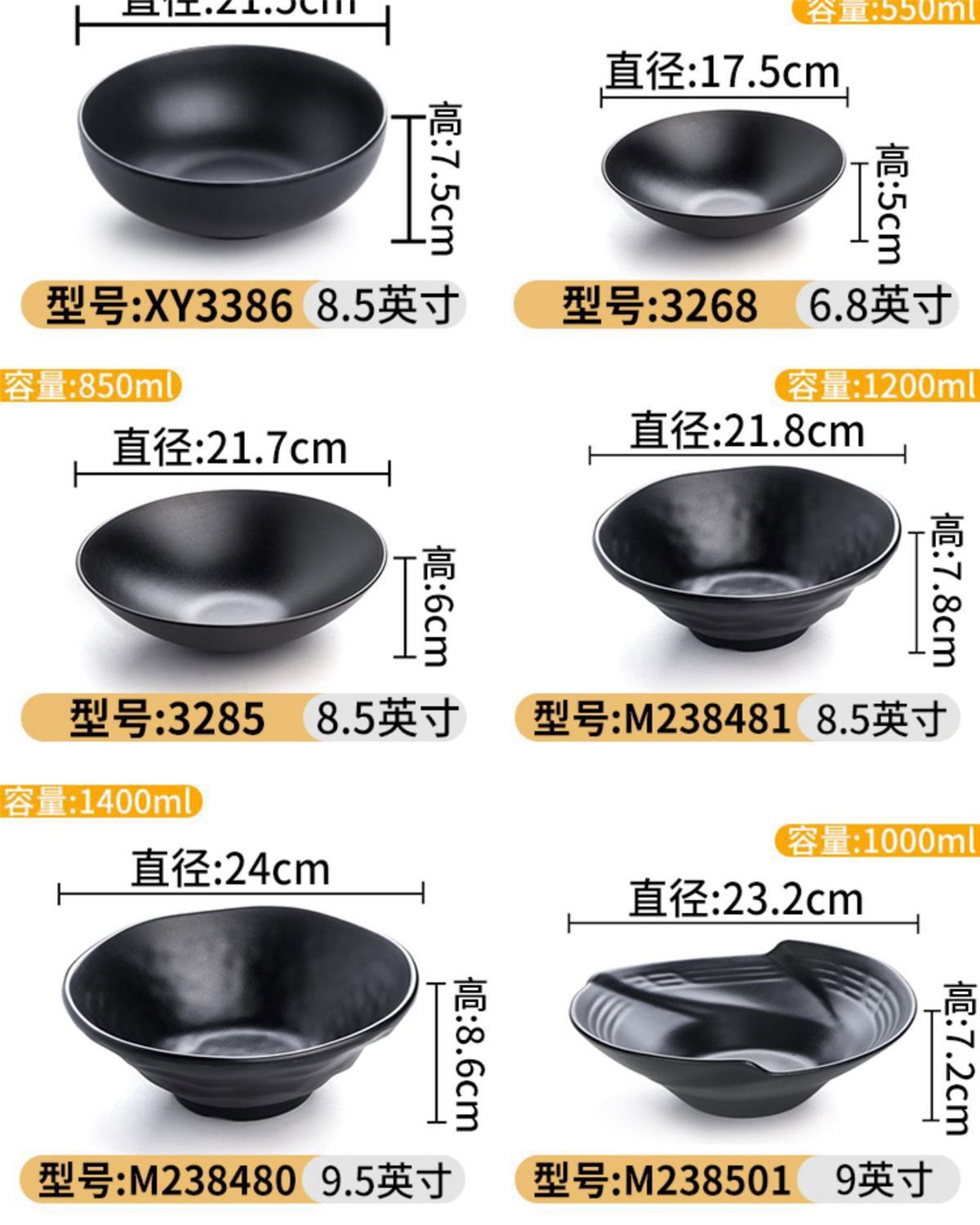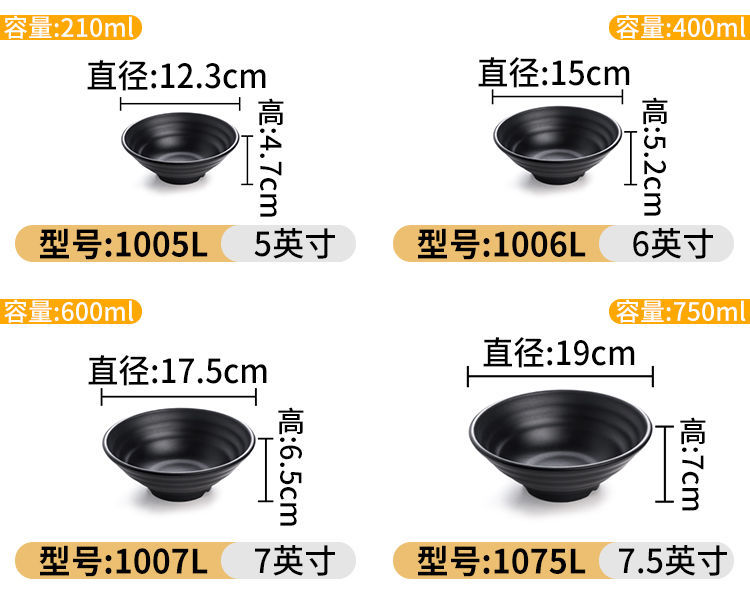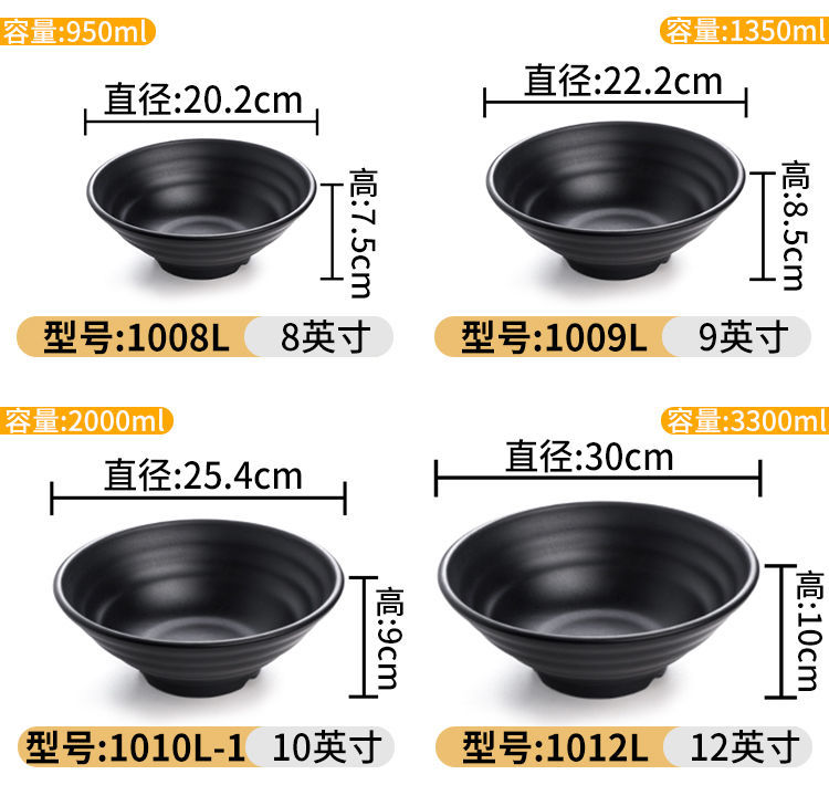 melamine frosted noodle bowl noodle restaurant tableware imitation porcelain spicy hot ramen rice noodles soup bowl plastic black large round bowl commercial 中文版