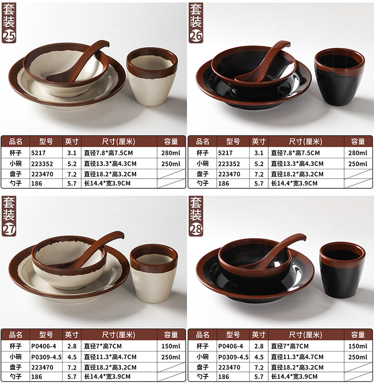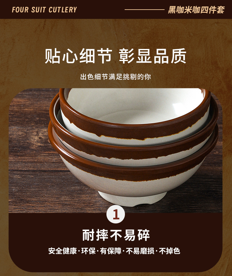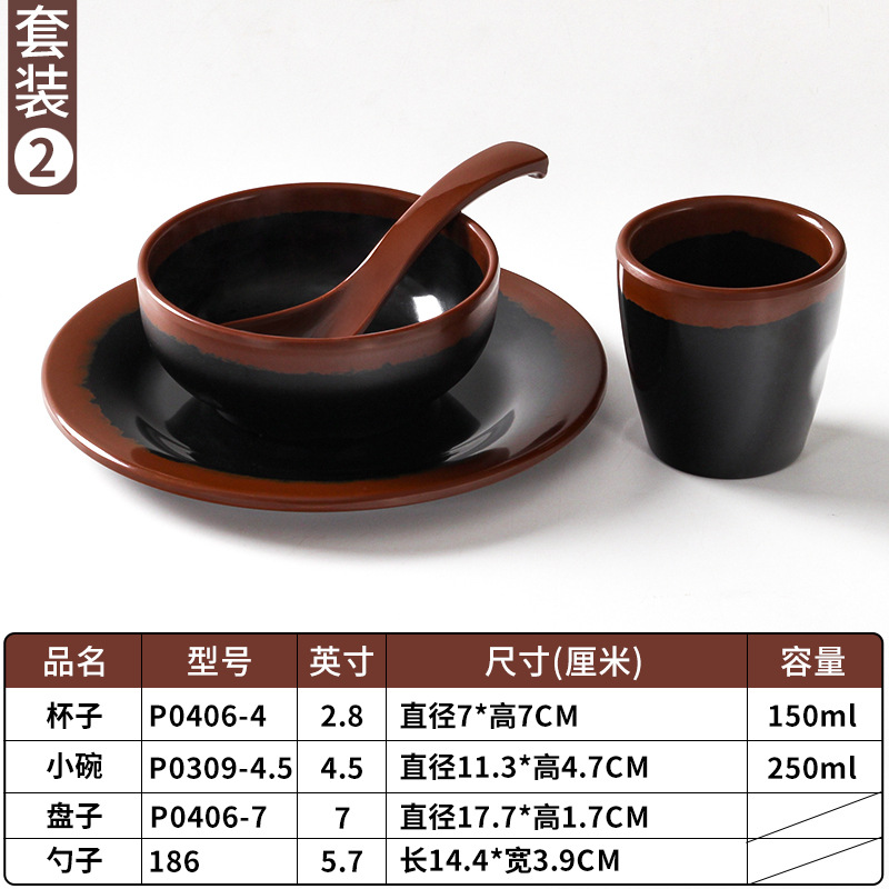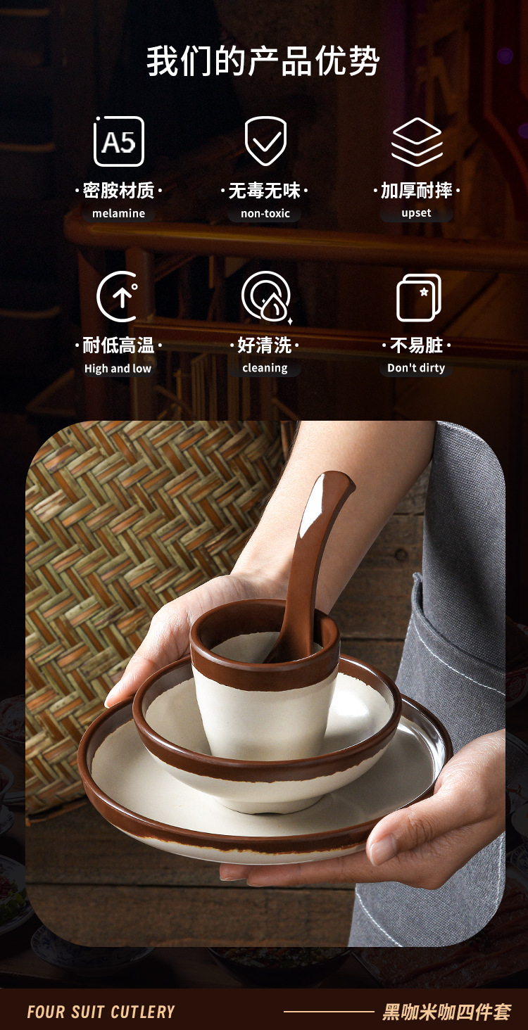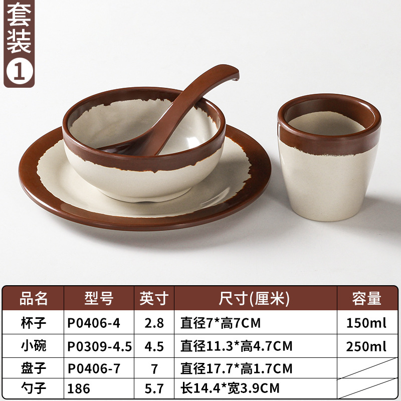 a5 melamine tableware shijing nostalgic retro stall style hot pot restaurant four-piece set bowl dish spoon cup set commercial