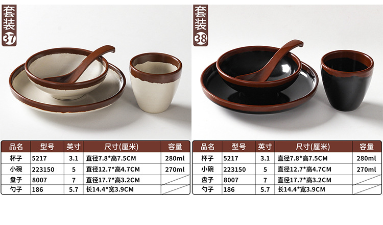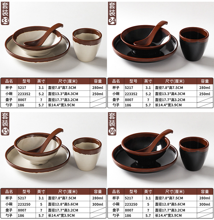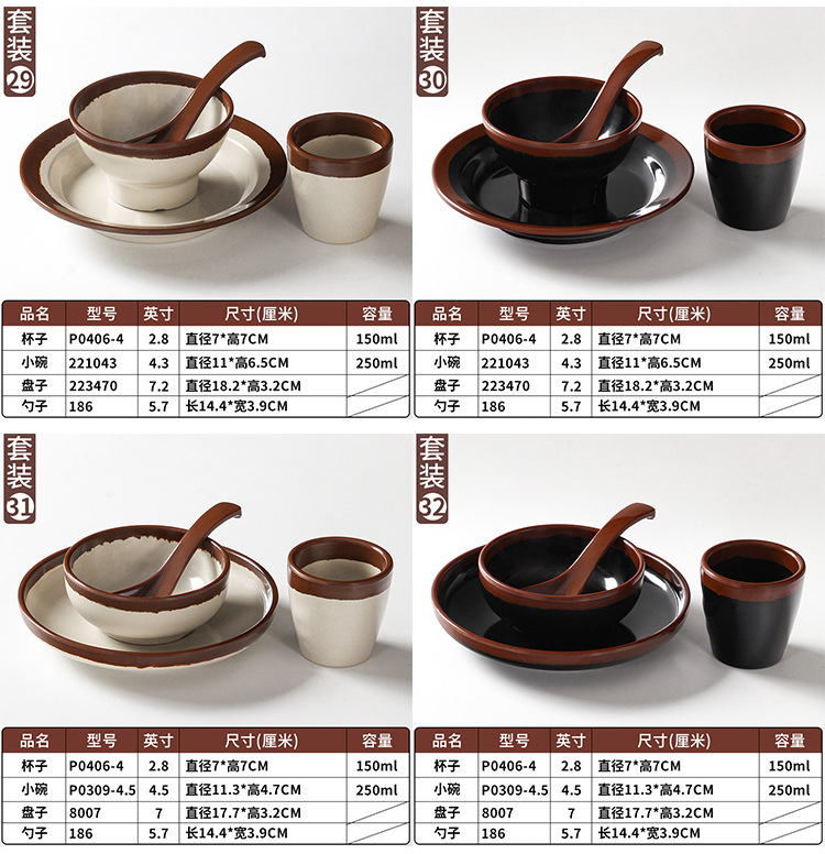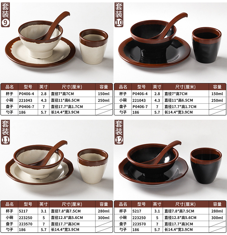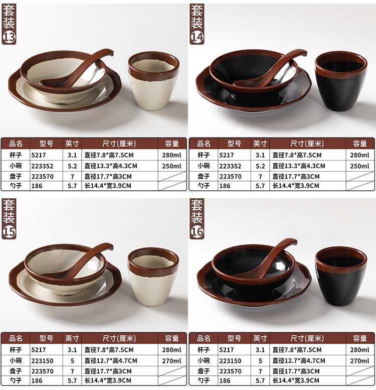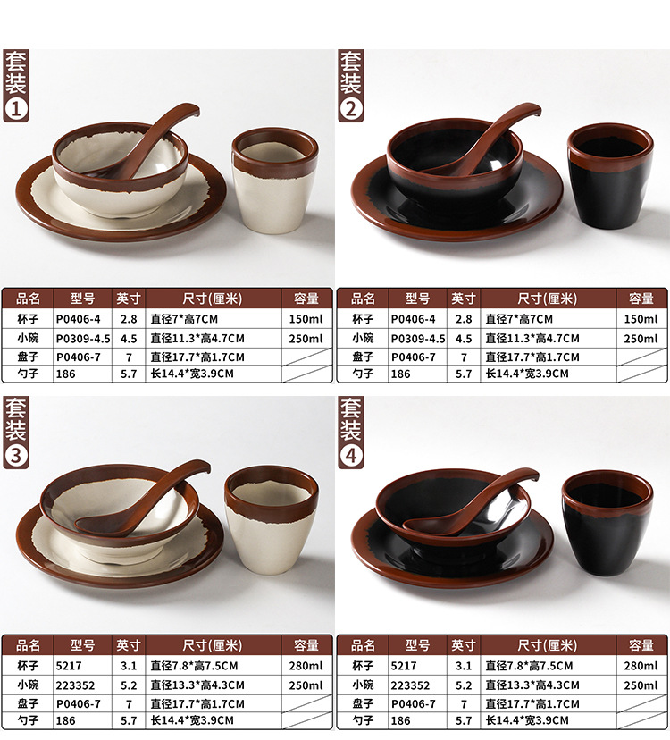 a5 melamine tableware shijing nostalgic retro stall style hot pot restaurant four-piece set bowl dish spoon cup set commercial