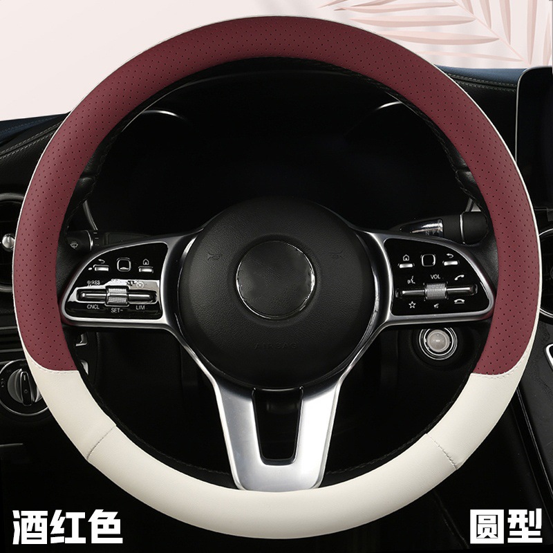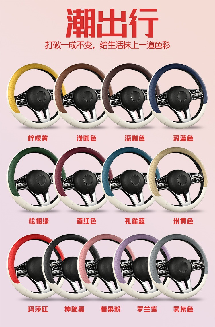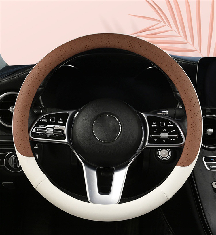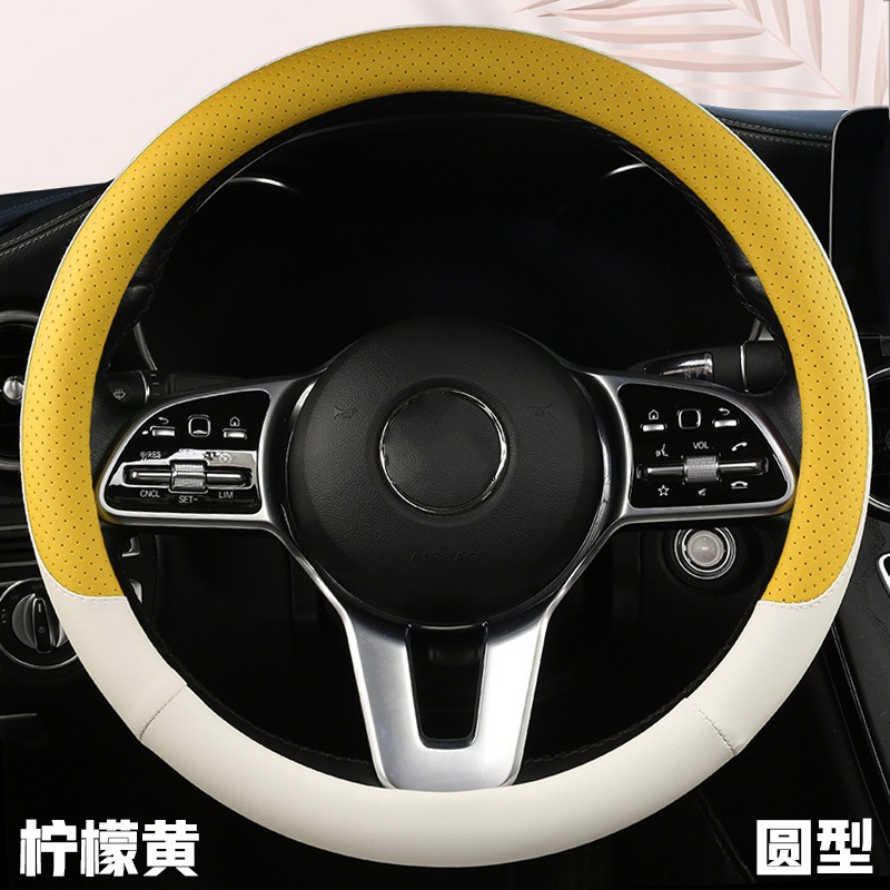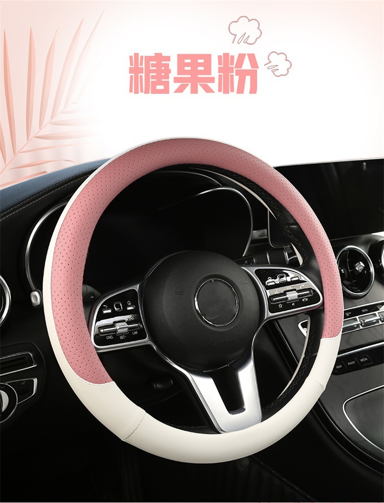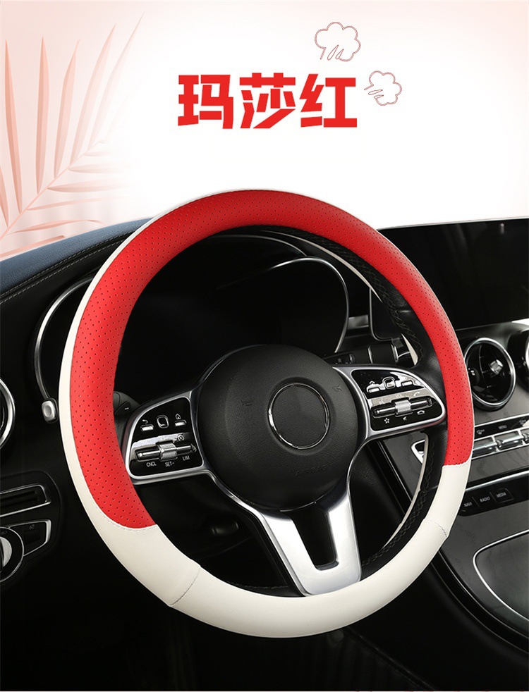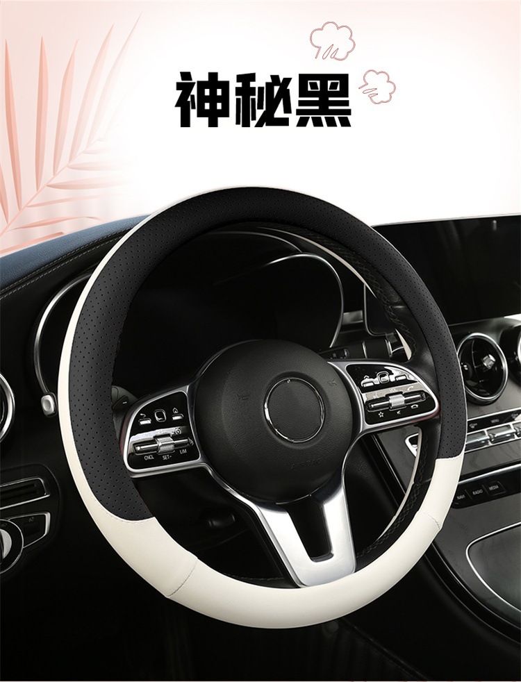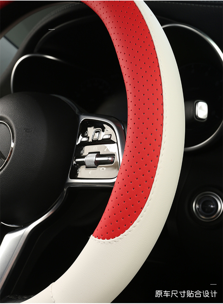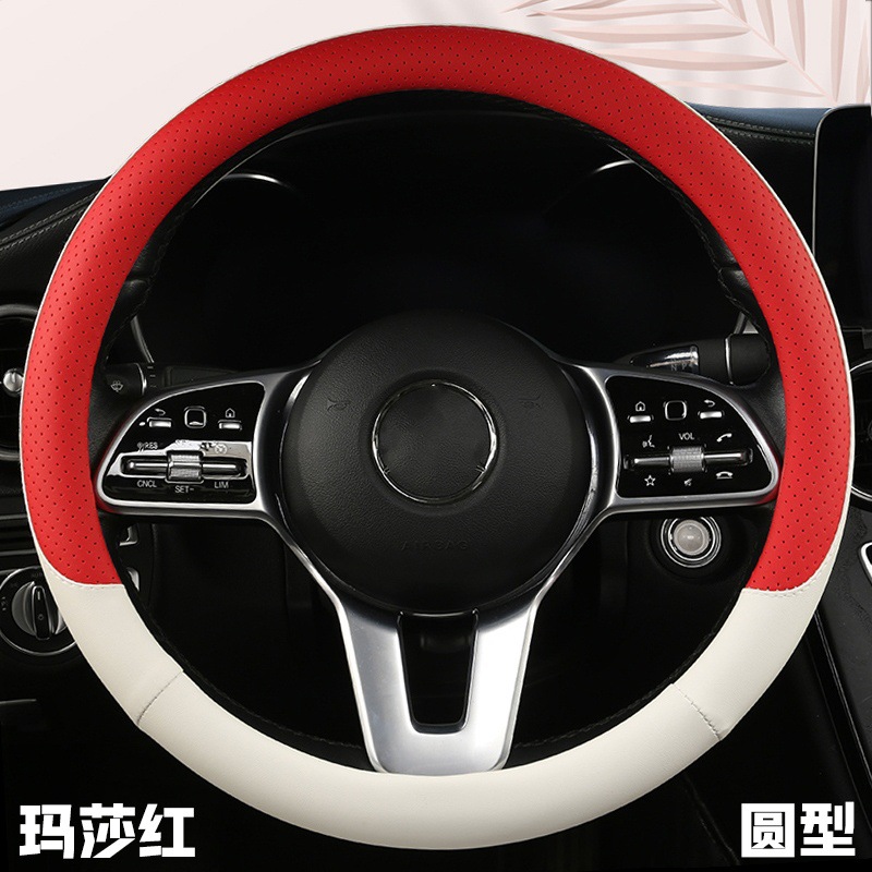 fashion car steering wheel cover napa leather four seasons universal punch car handle cover abrasion-resistant leather car interior decoration protective cover 中文版