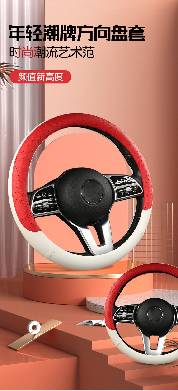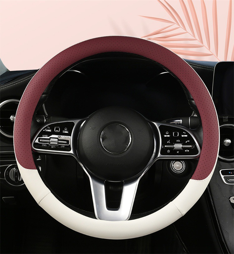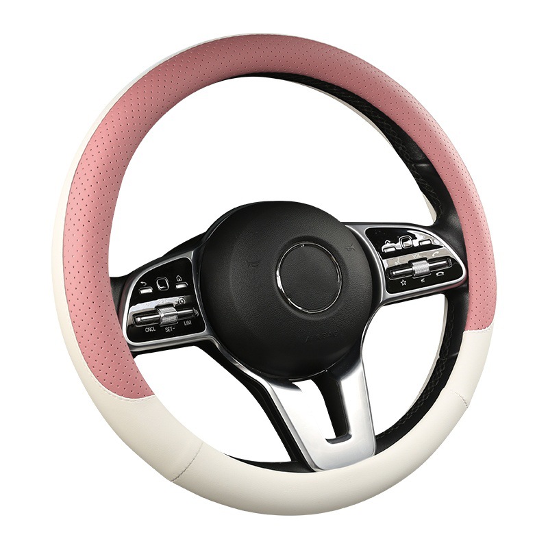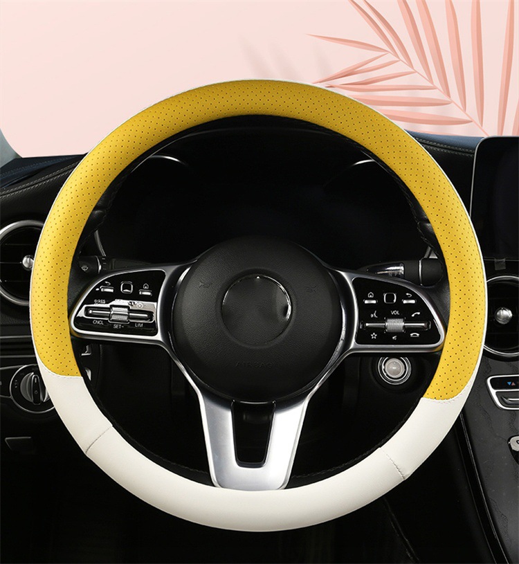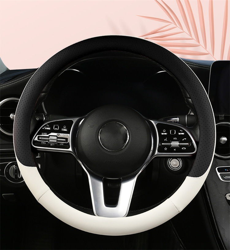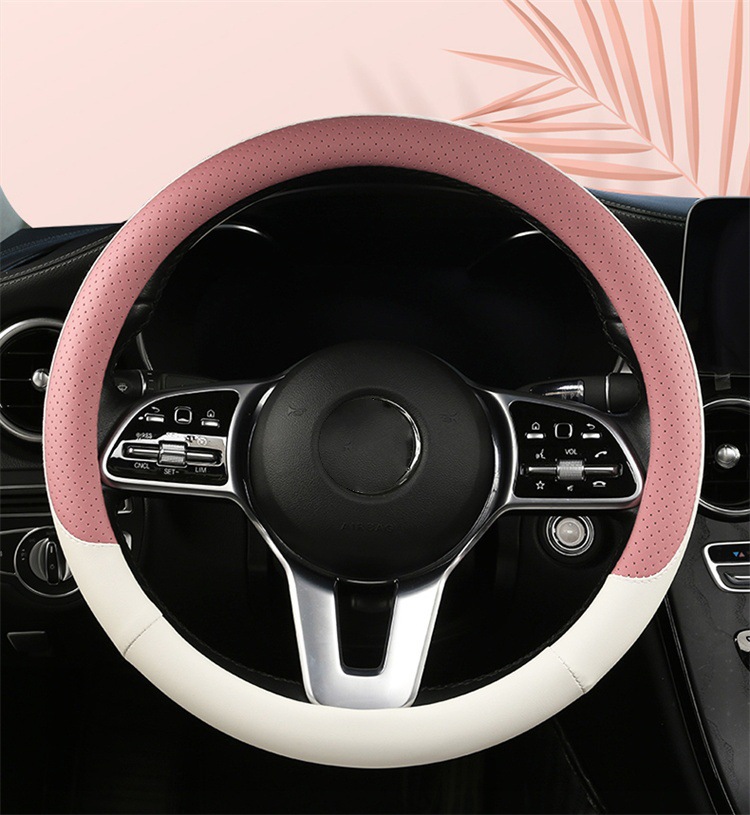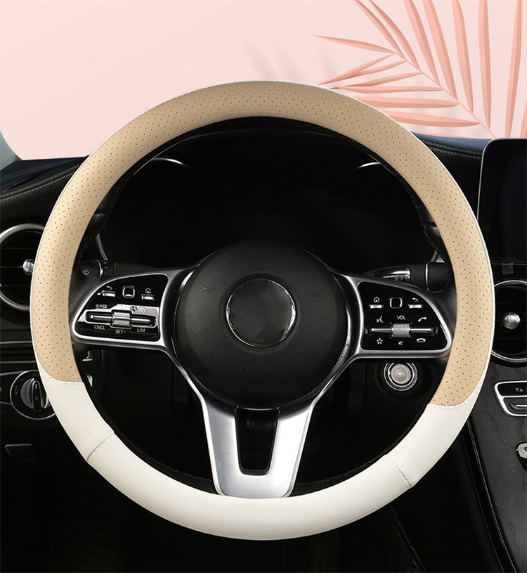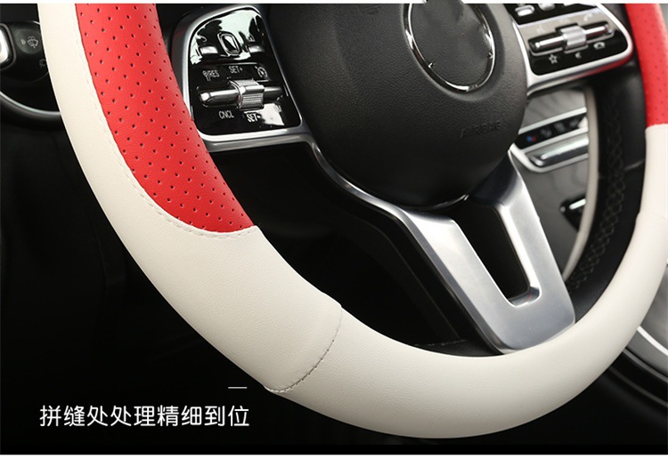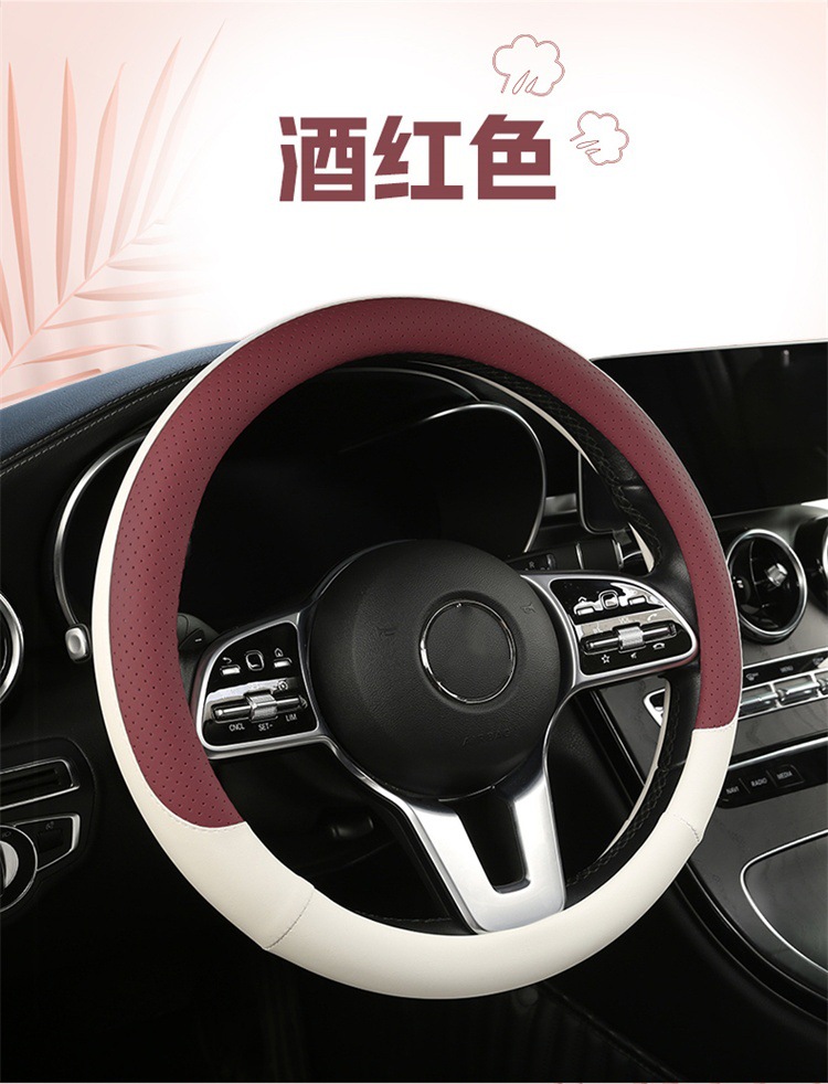 fashion car steering wheel cover napa leather four seasons universal punch car handle cover abrasion-resistant leather car interior decoration protective cover 中文版