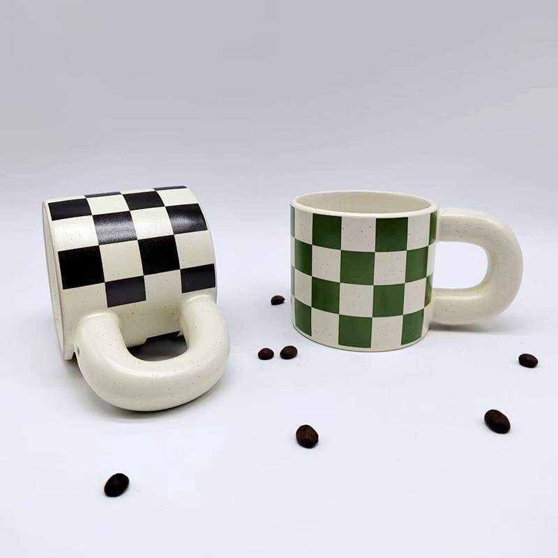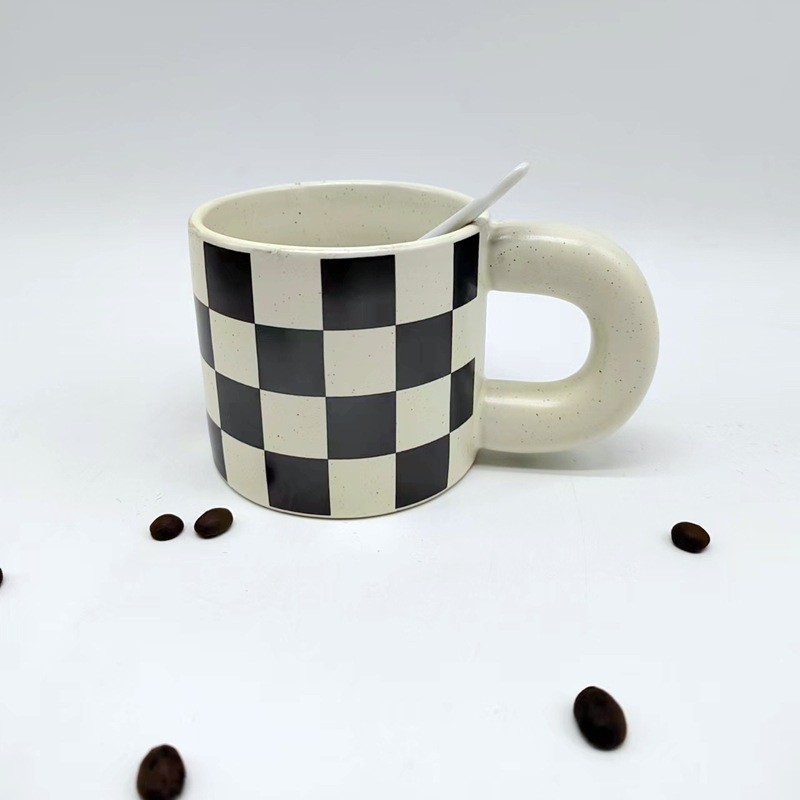 chubby cup hand pinch vintage splash ink black and white square mug milk cup coffee cup breakfast cup water cup
