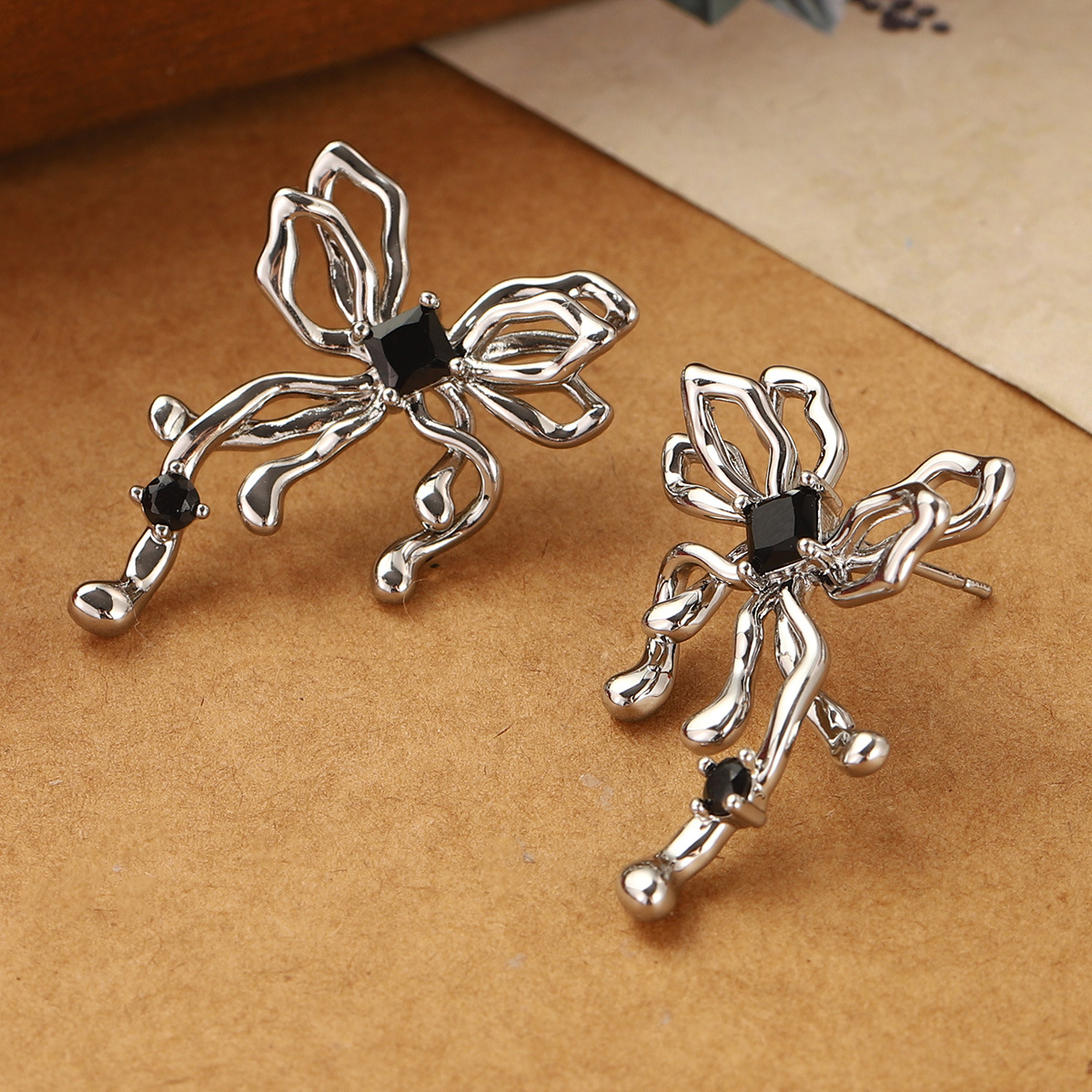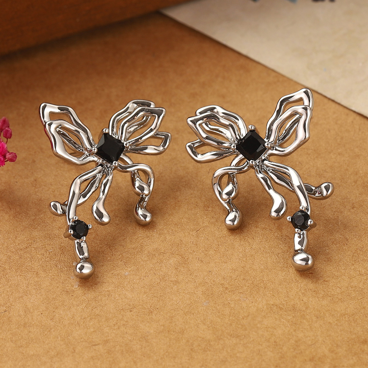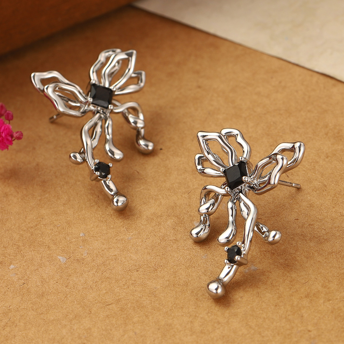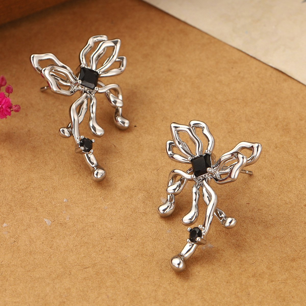 ins simple butterfly studs hollow design irregular high-grade earrings summer cold style 925 earrings for women wholesale 中文版