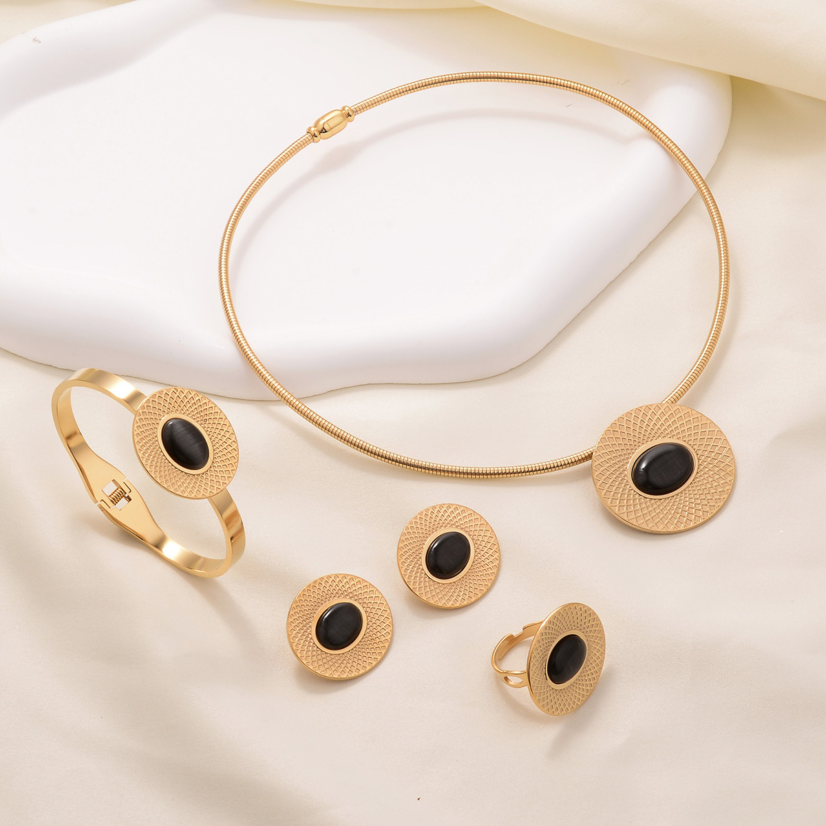 european and american ins style stainless steel four-piece set elegant high-grade geometric glossy oval niche high-grade necklace earrings 中文版