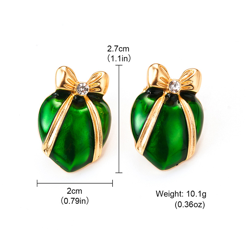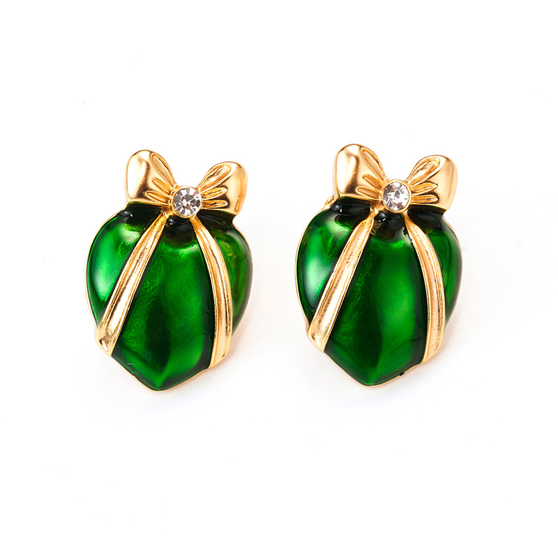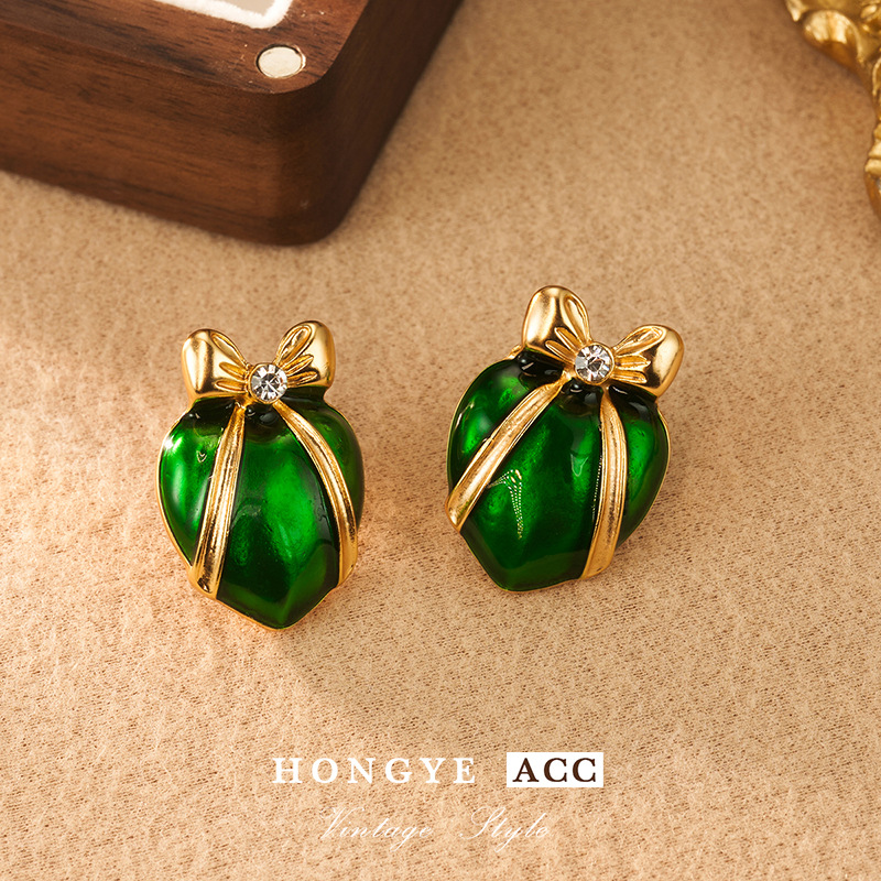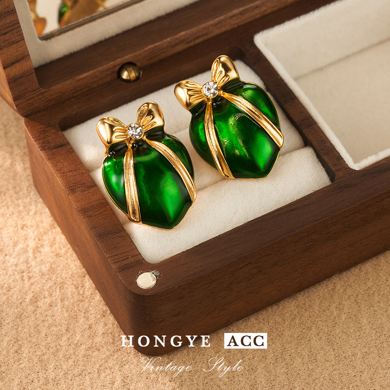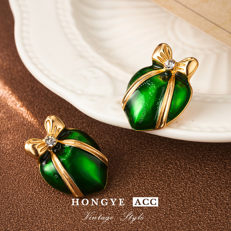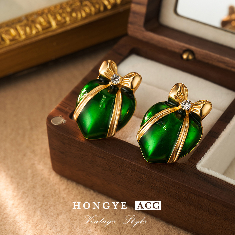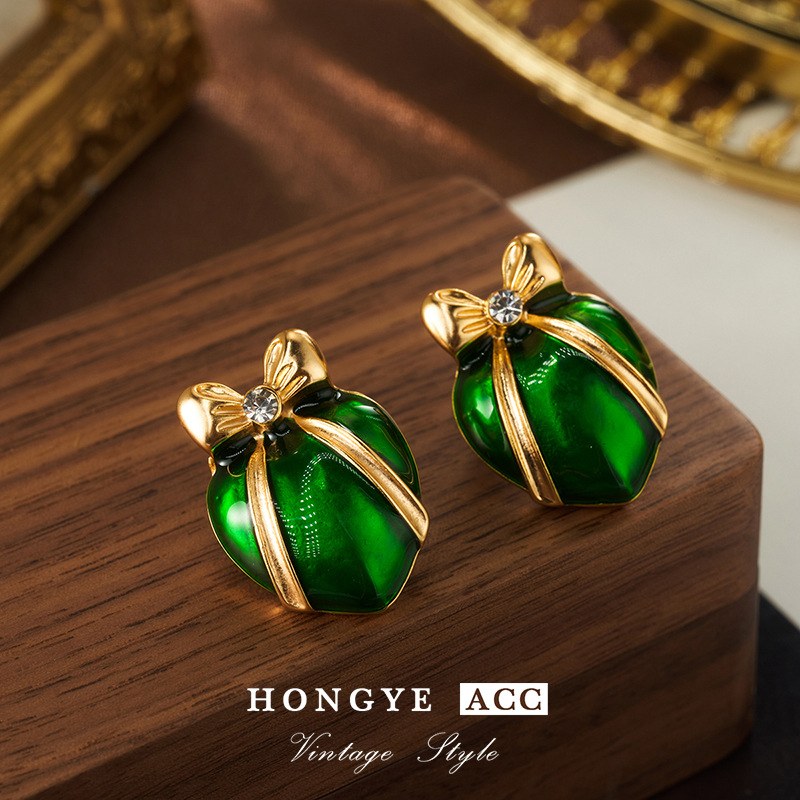 bow earrings women's green lovely 925 earrings spring high-grade mid-ancient vintage ornament palace style earrings 中文版