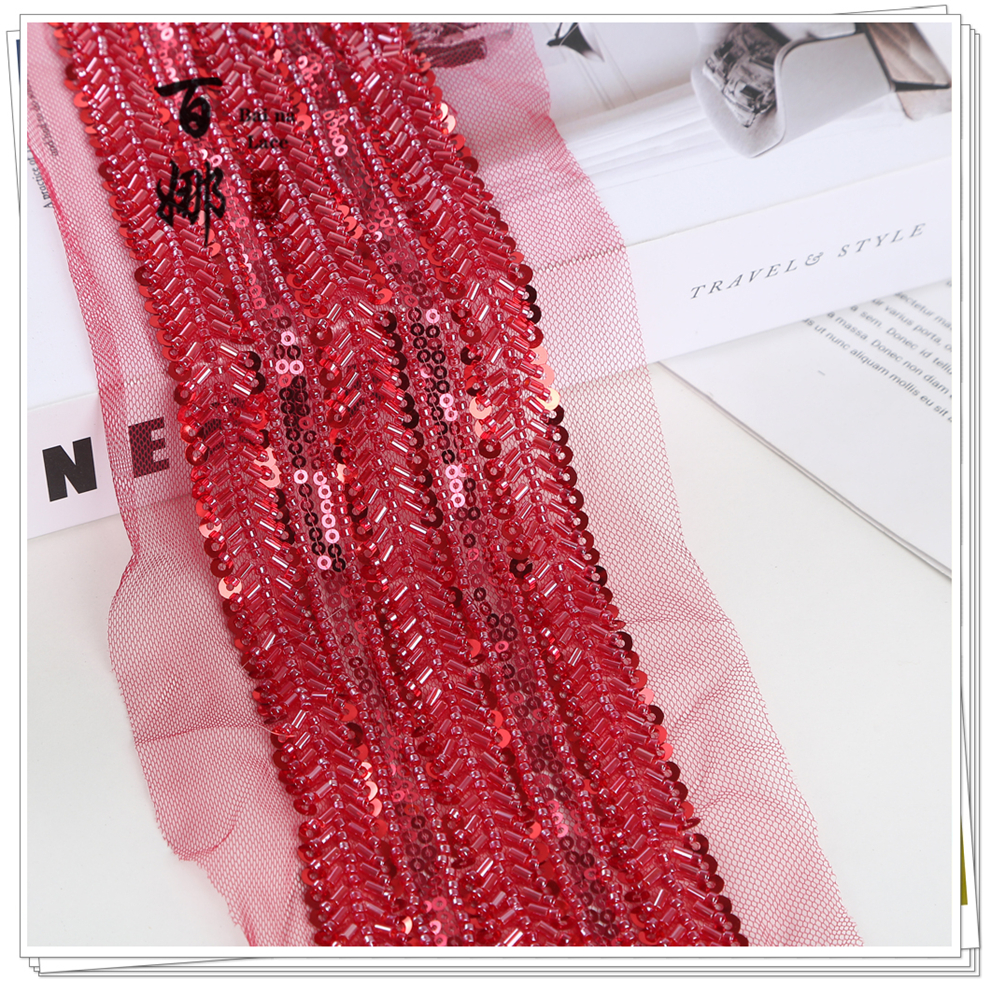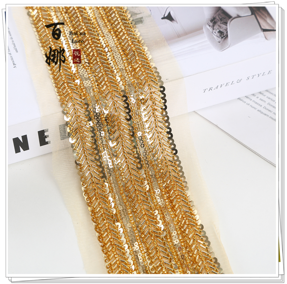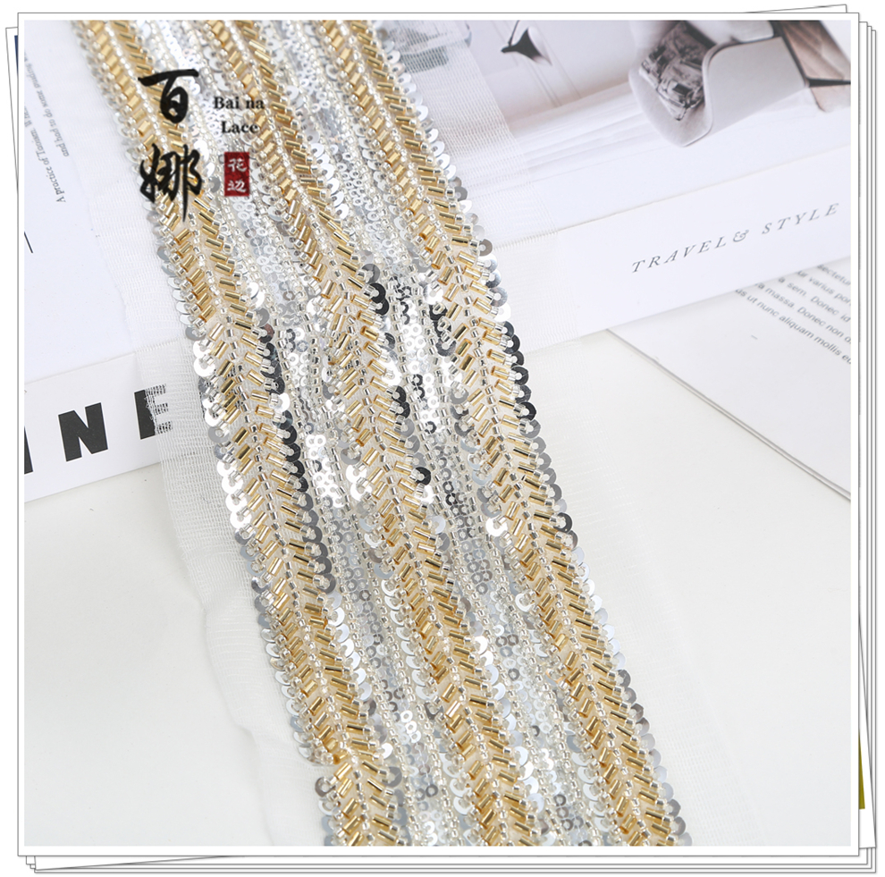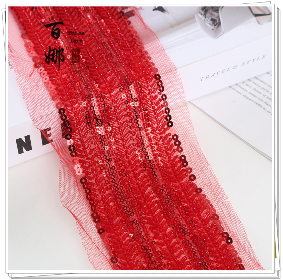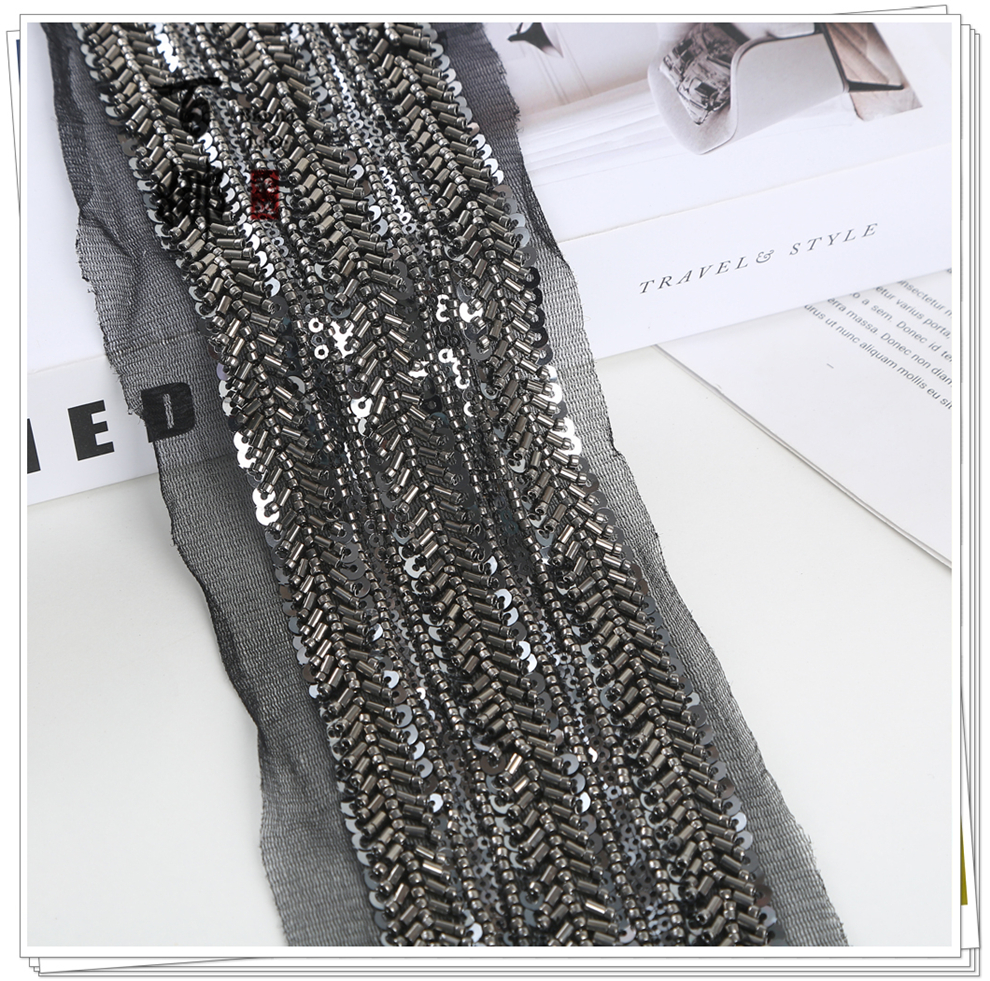 Product Name: Net Shade Bottom Long Tube Bright Bead Tube Lace Headband Stage Dress Open-fronted Hanfu Collar Decorative Fabric Ribbon