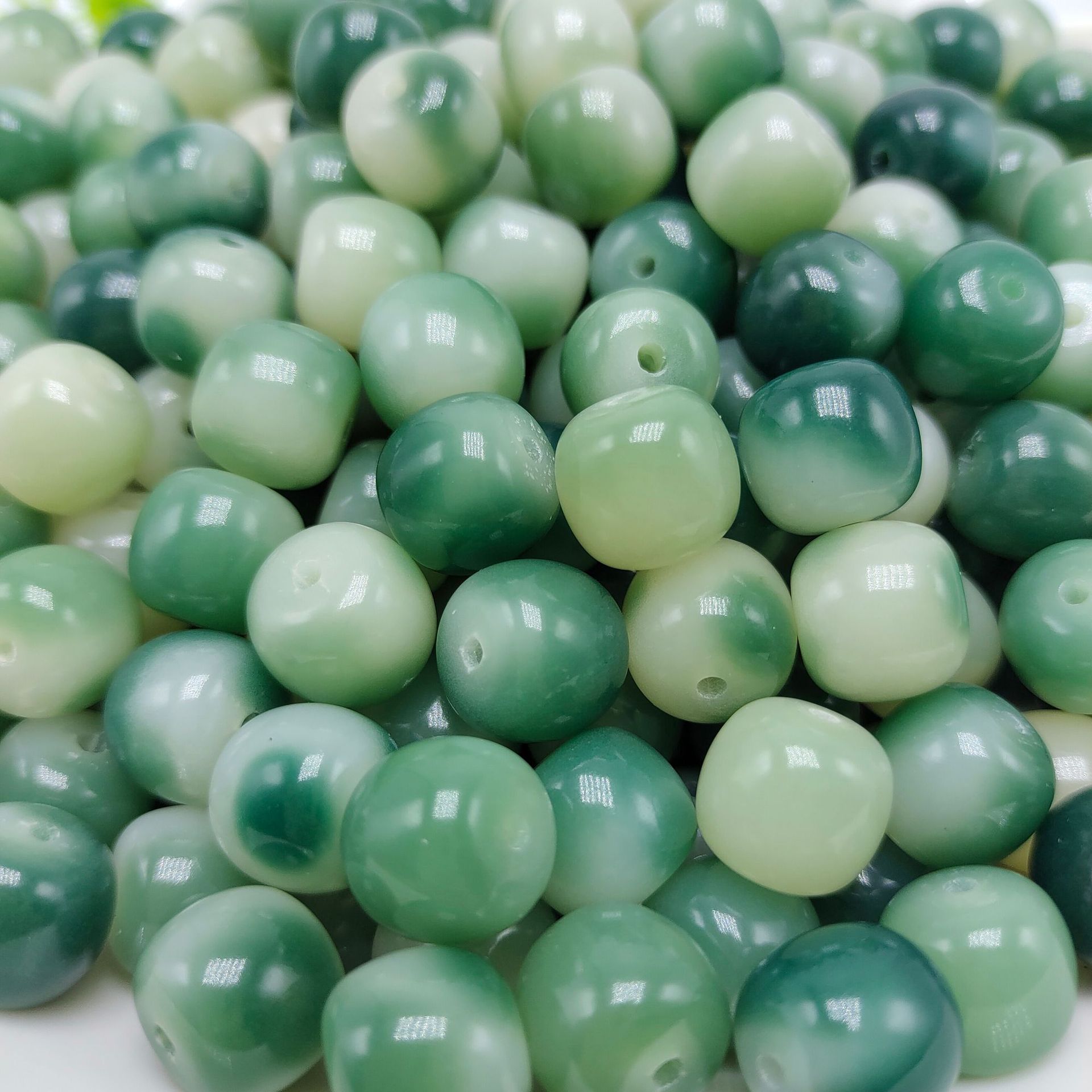 10 * 11mm old barrel beads green floating flowers random