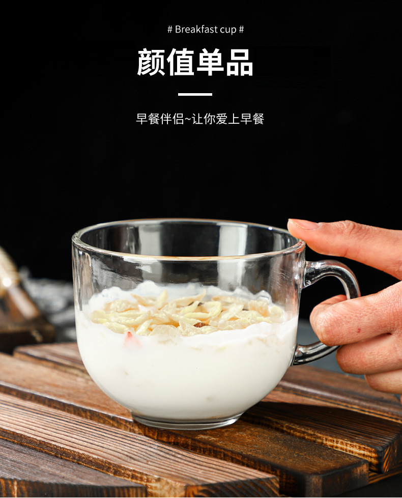 ins oatmeal lotus root starch breakfast cup transparent glass household large capacity milk cup coffee cup handle water cup 中文版